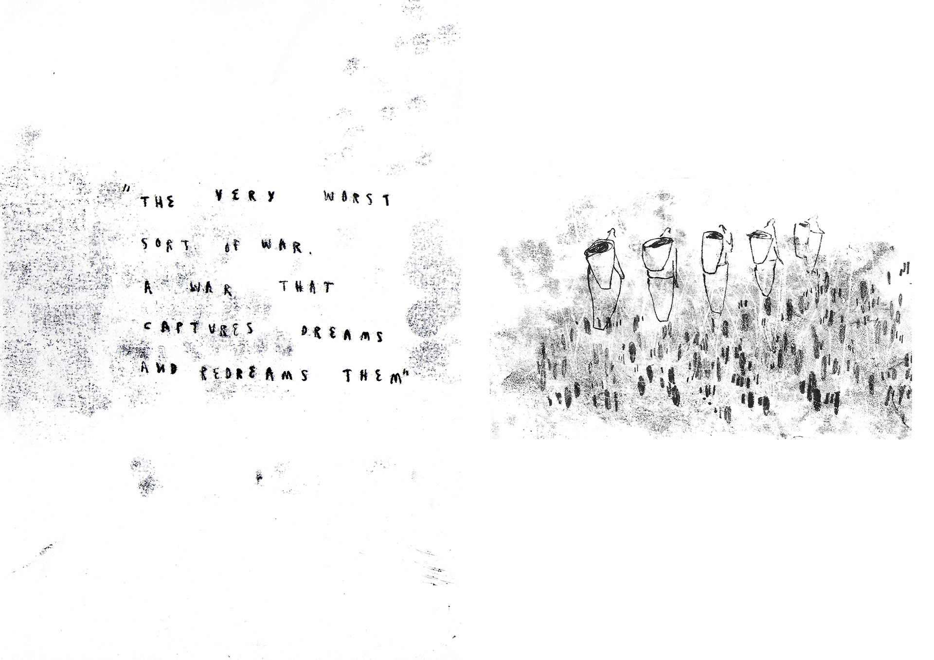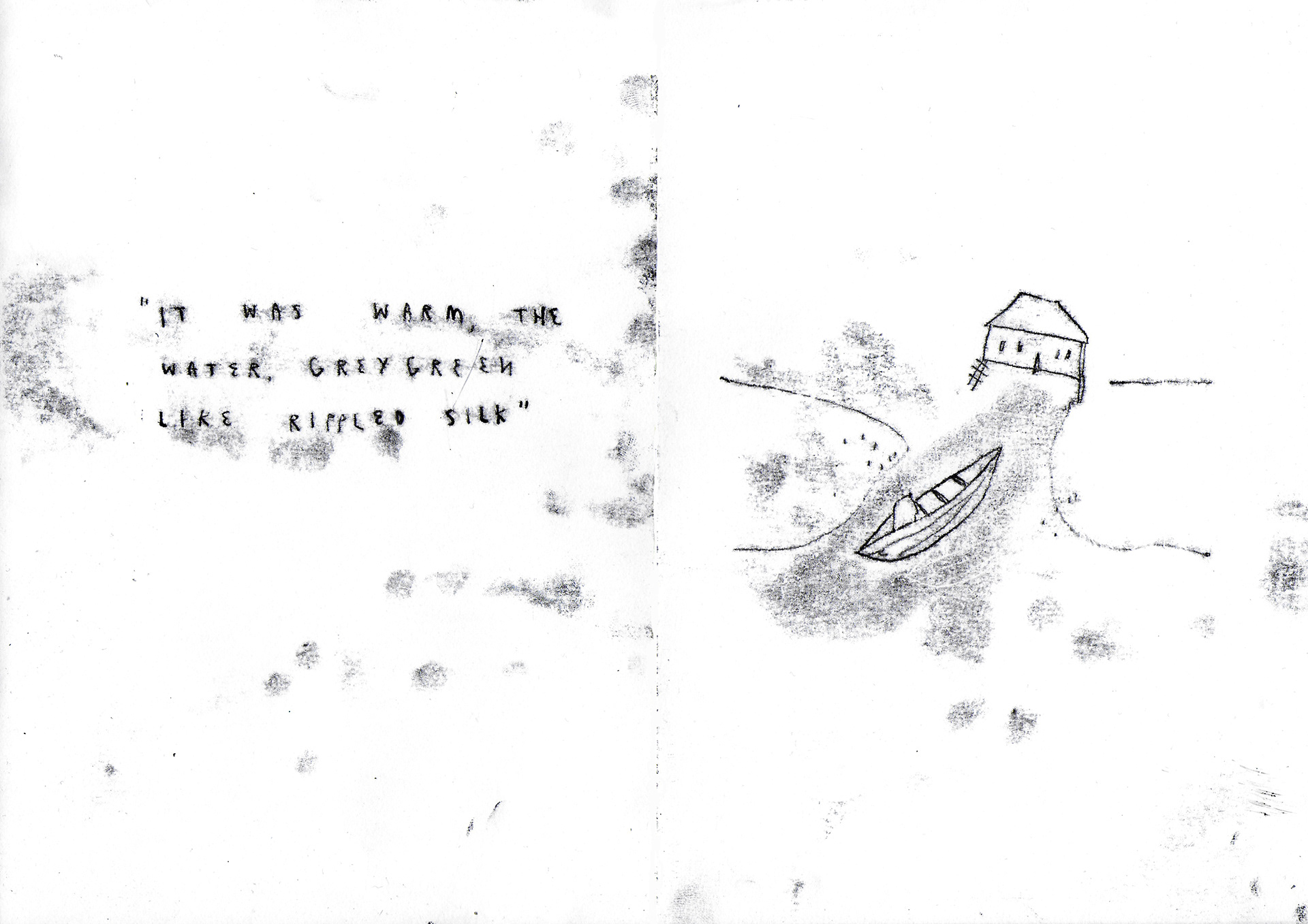 A project investigation and celebrating Arundhati Roy's novel The God of Small Things using traditional print based media (lino, monoprint, screenprint, monotype), accumulating in a one off publication (2018)