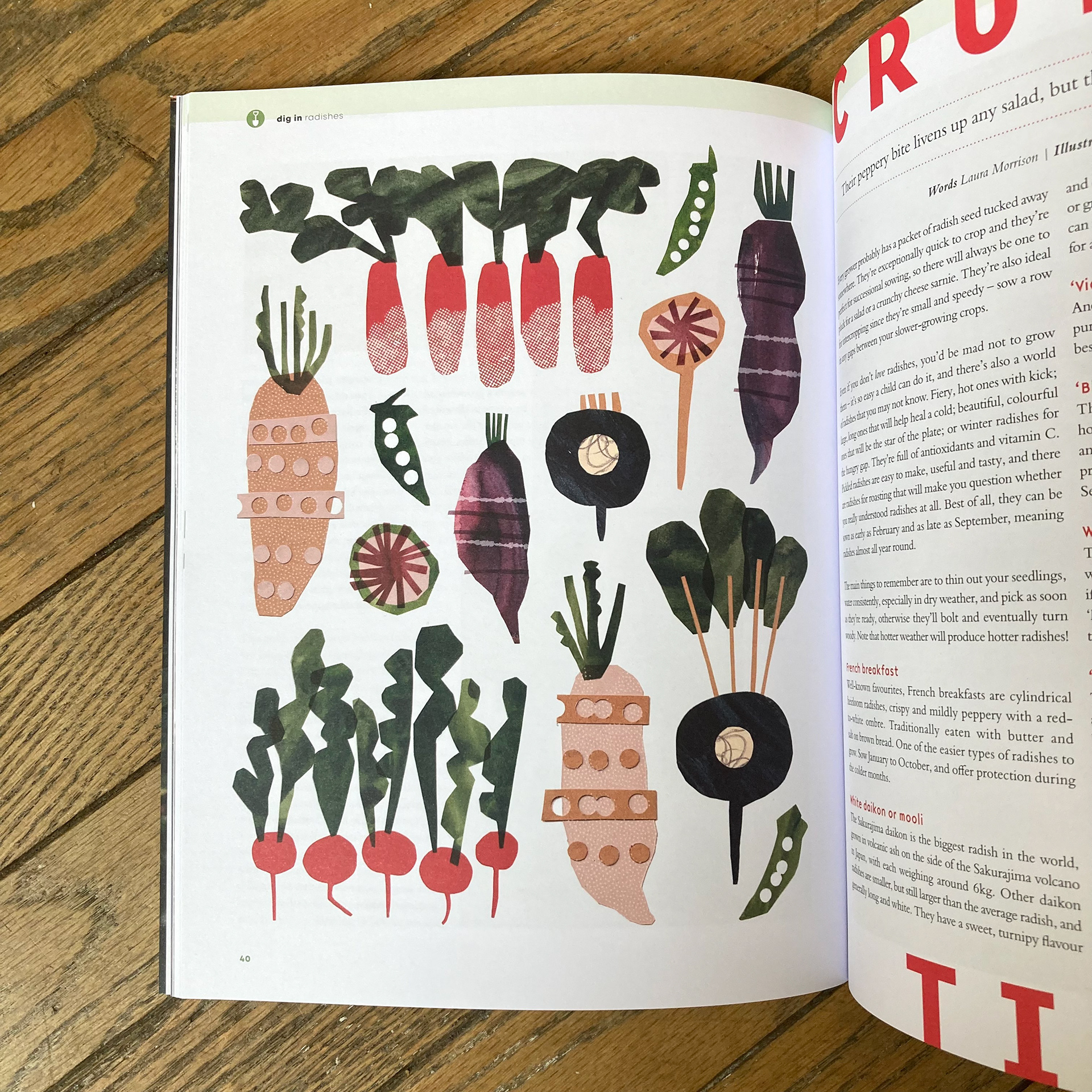 Editorial illustration for Issue 13 of Bloom Magazine. An article about radishes. AD: Sarah Pyke