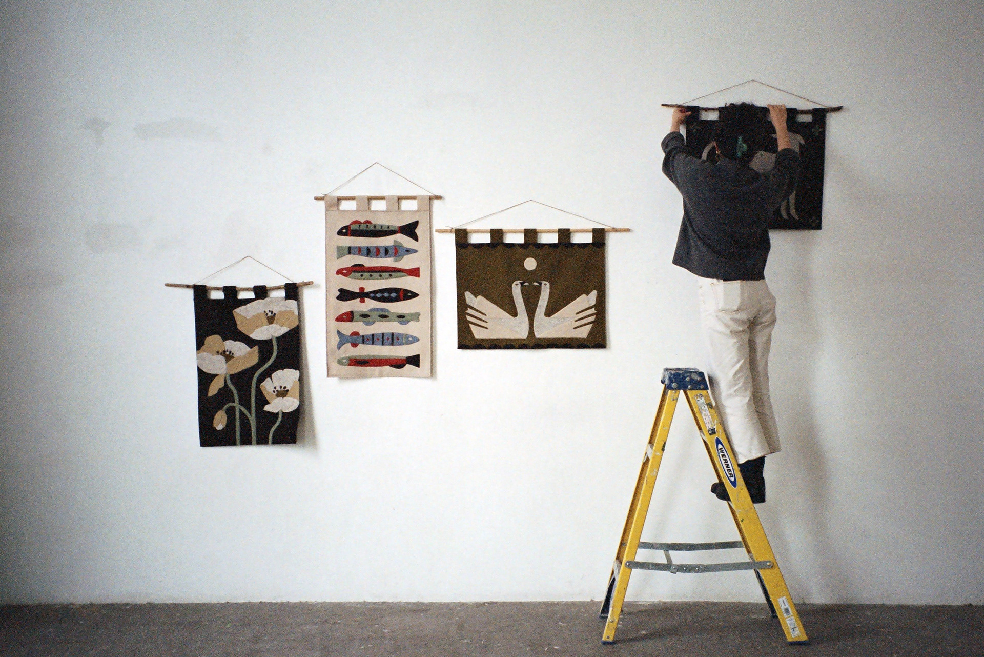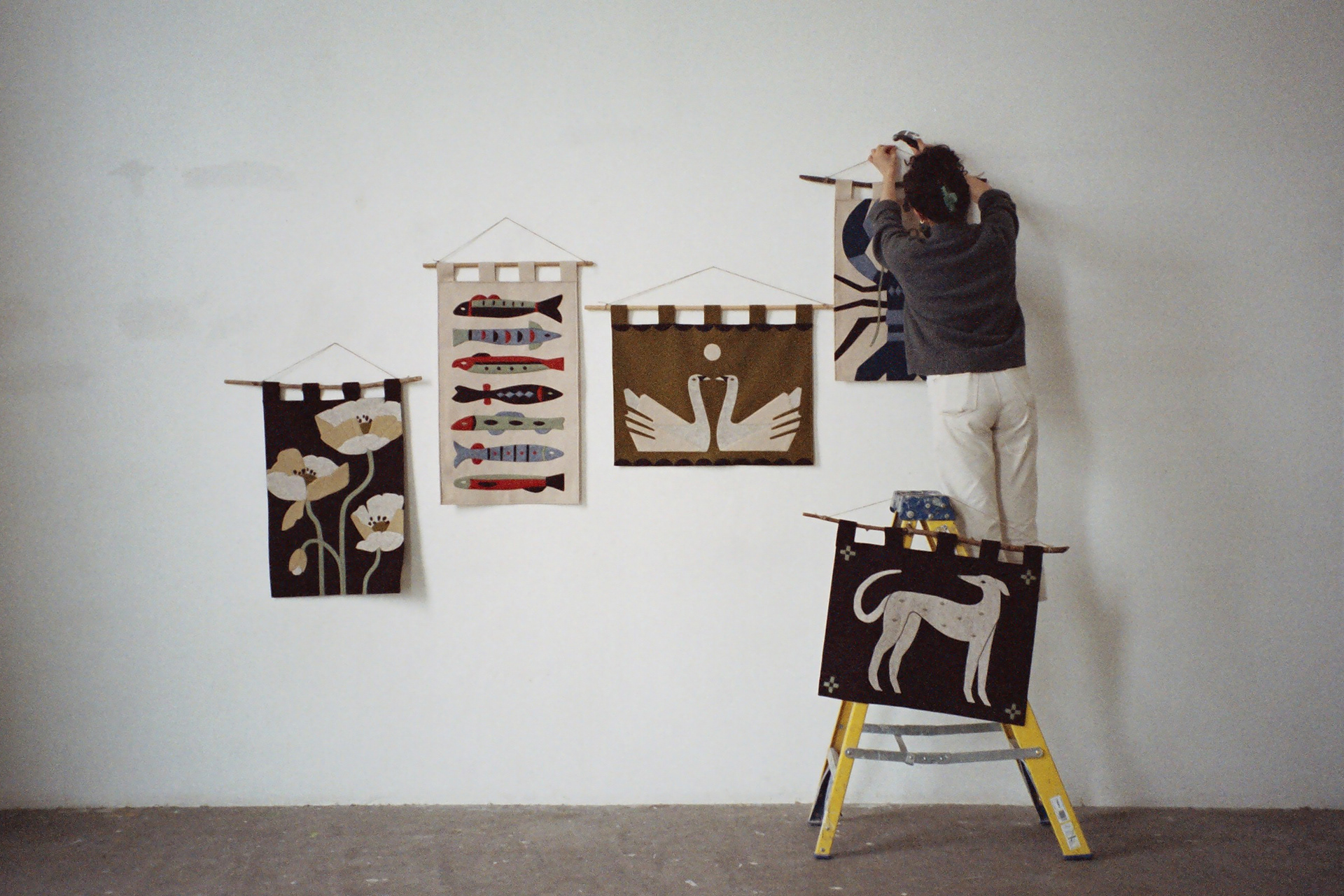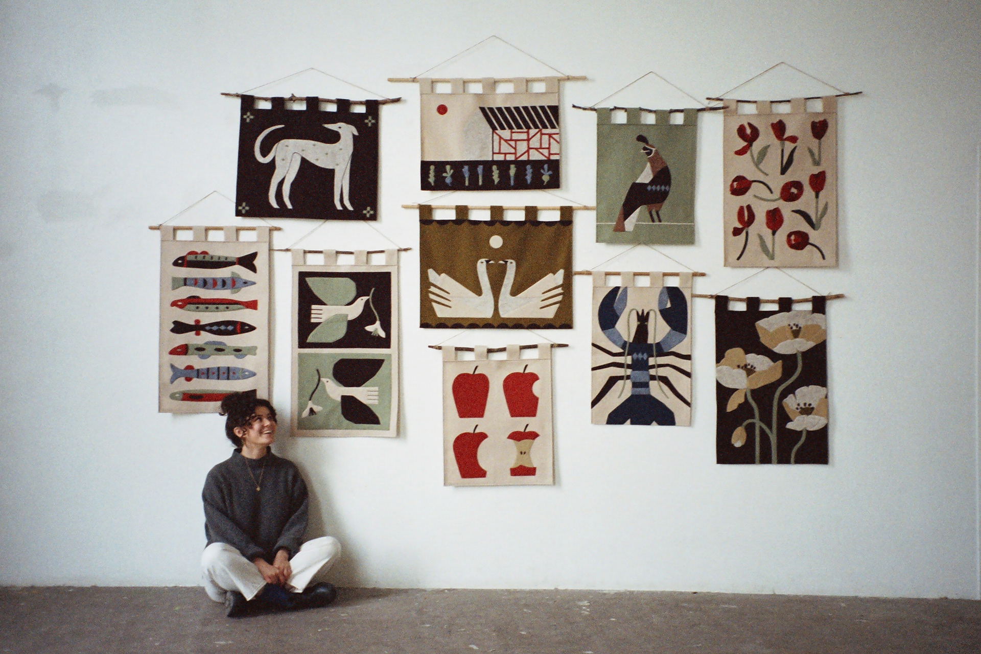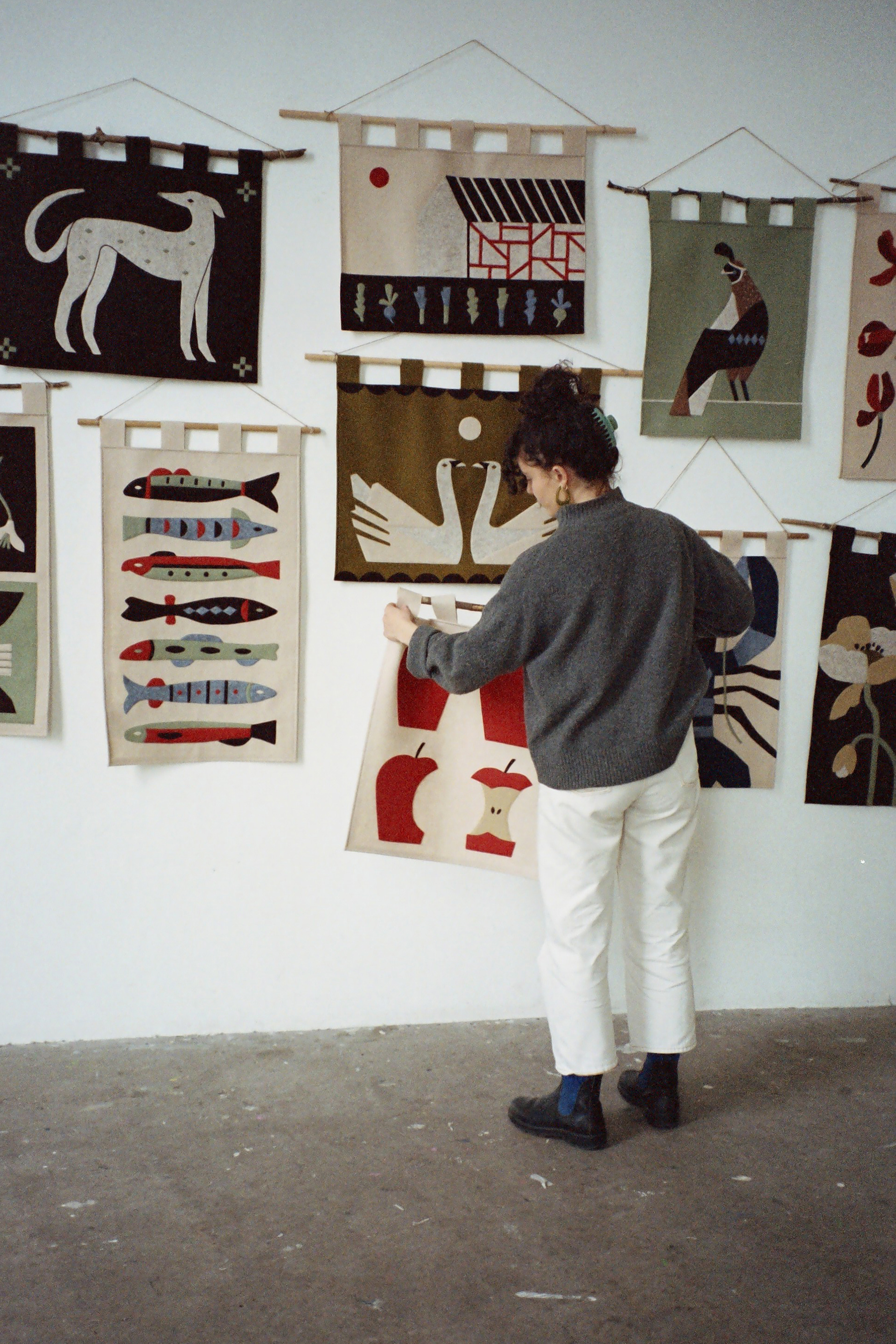 Photographs by Hannah Platt documenting 2 wall hanging collections, 2022 and 2023
