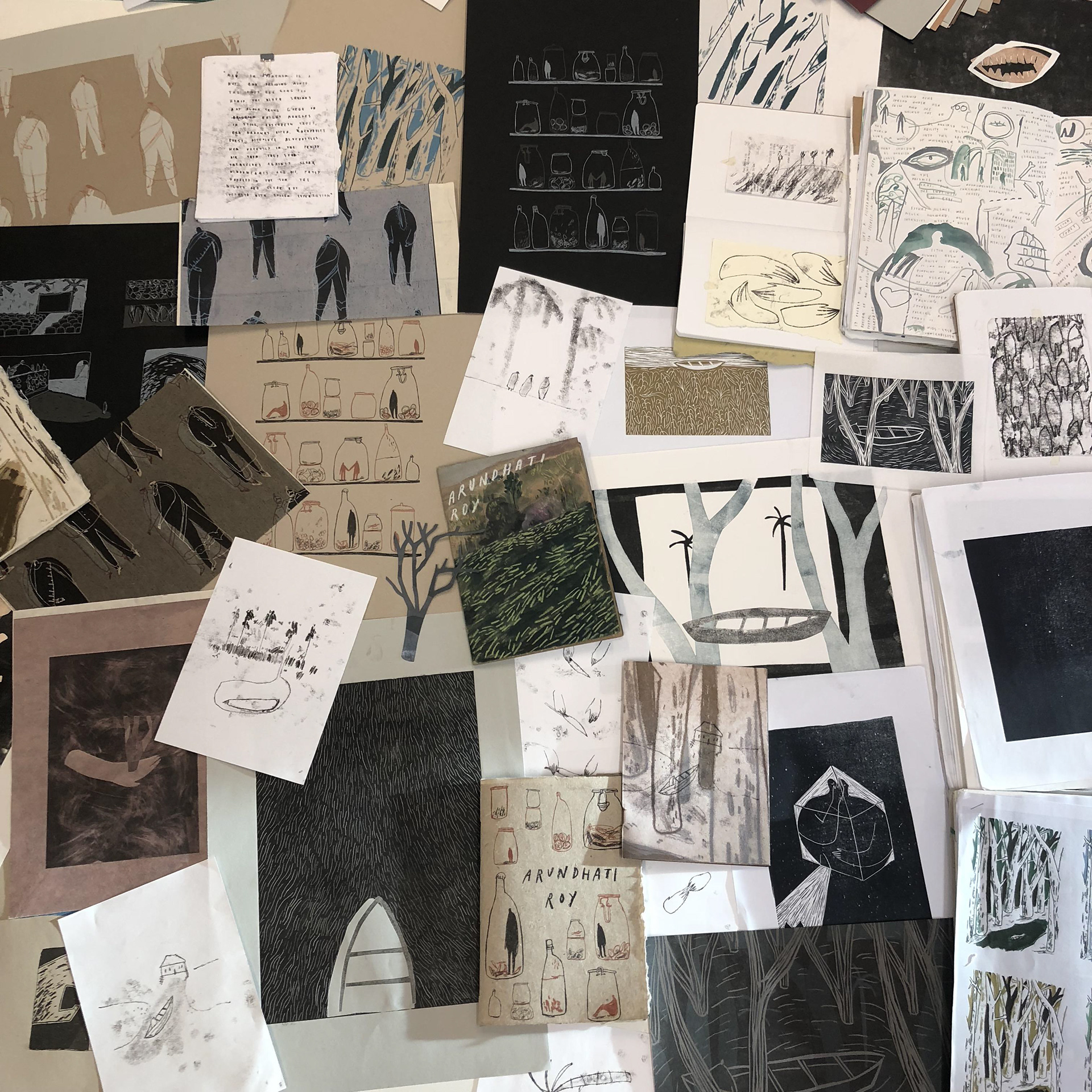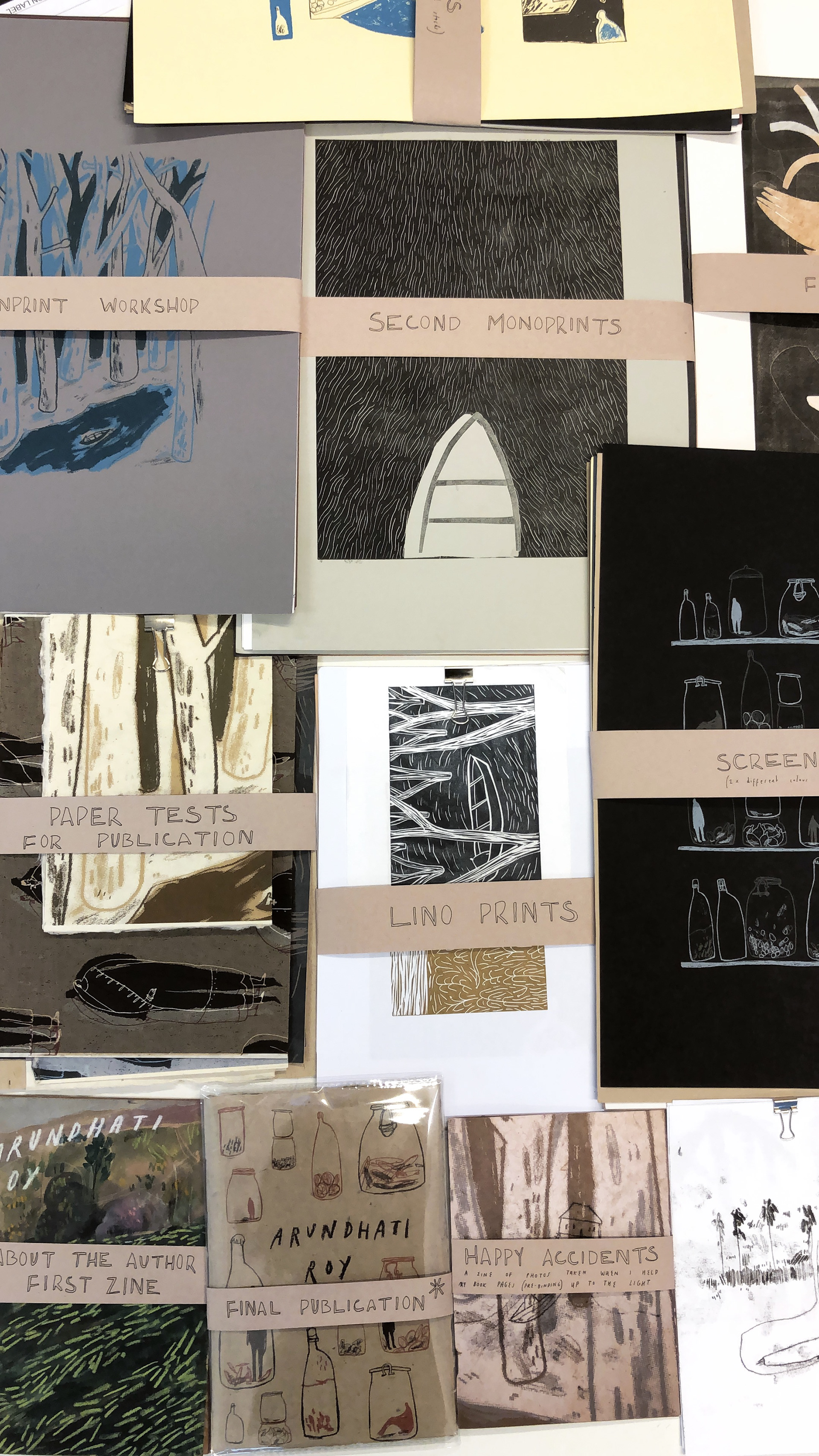 A project investigation and celebrating Arundhati Roy's novel The God of Small Things using traditional print based media (lino, monoprint, screenprint, monotype), accumulating in a one off publication