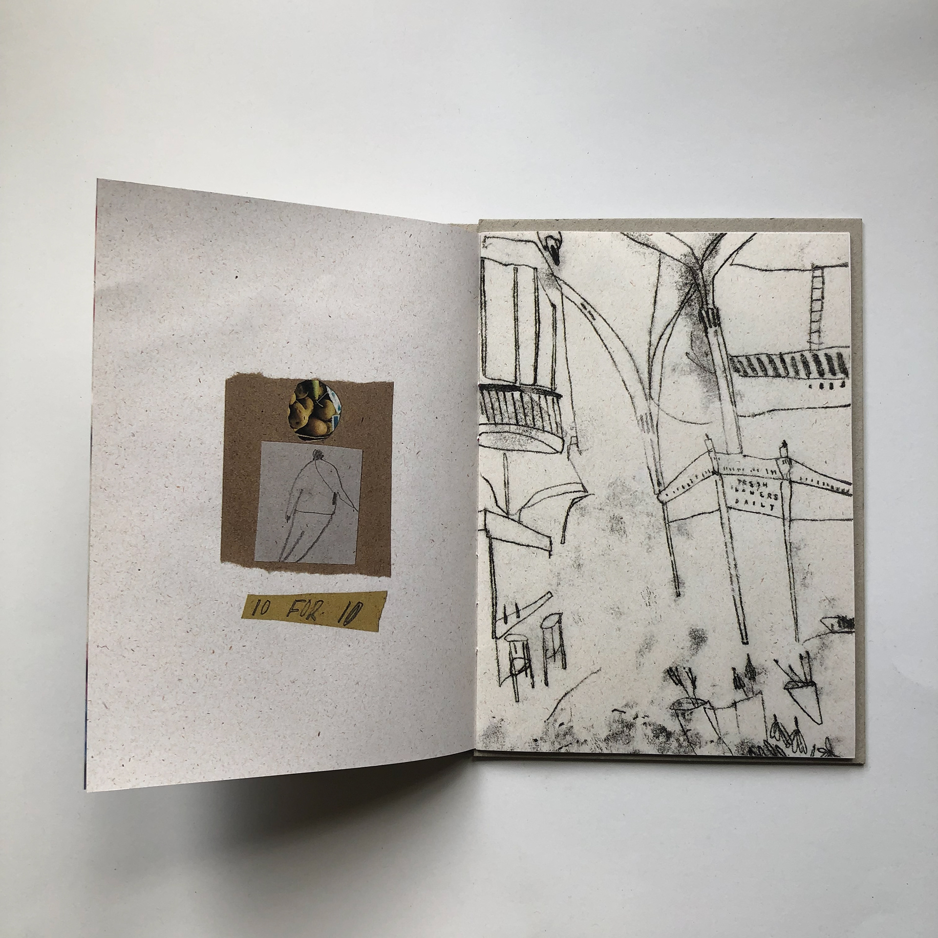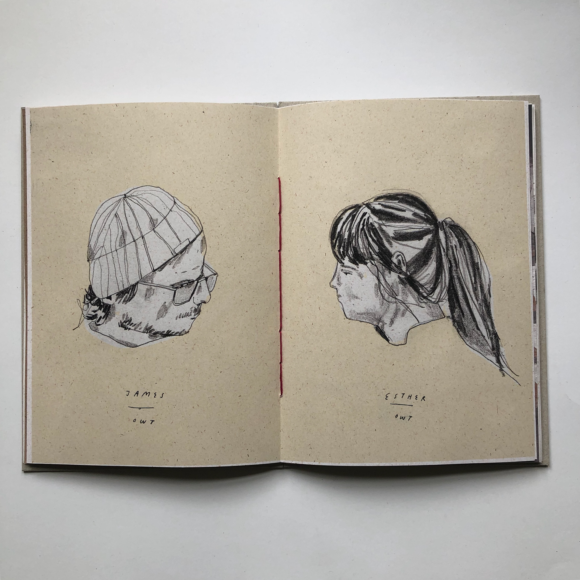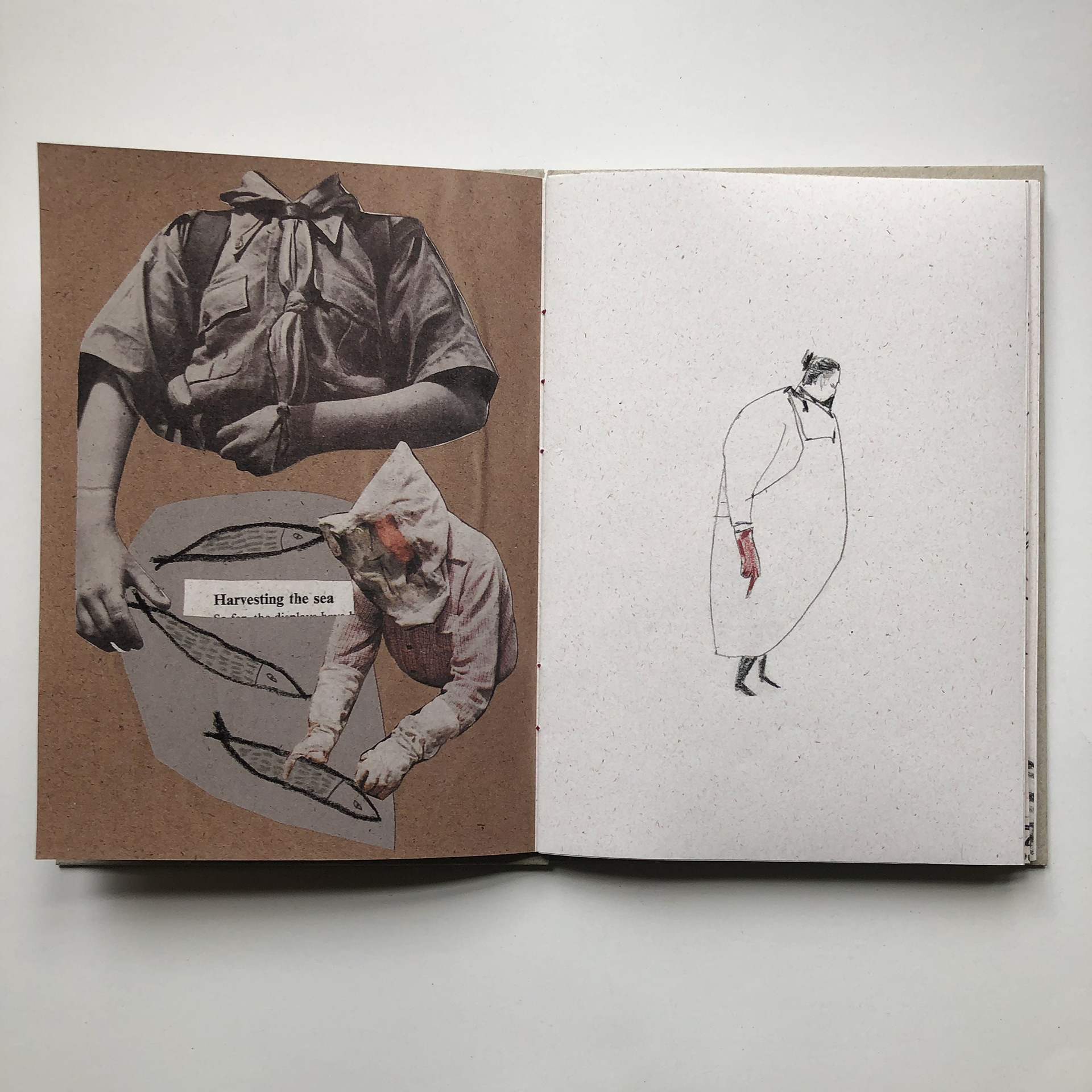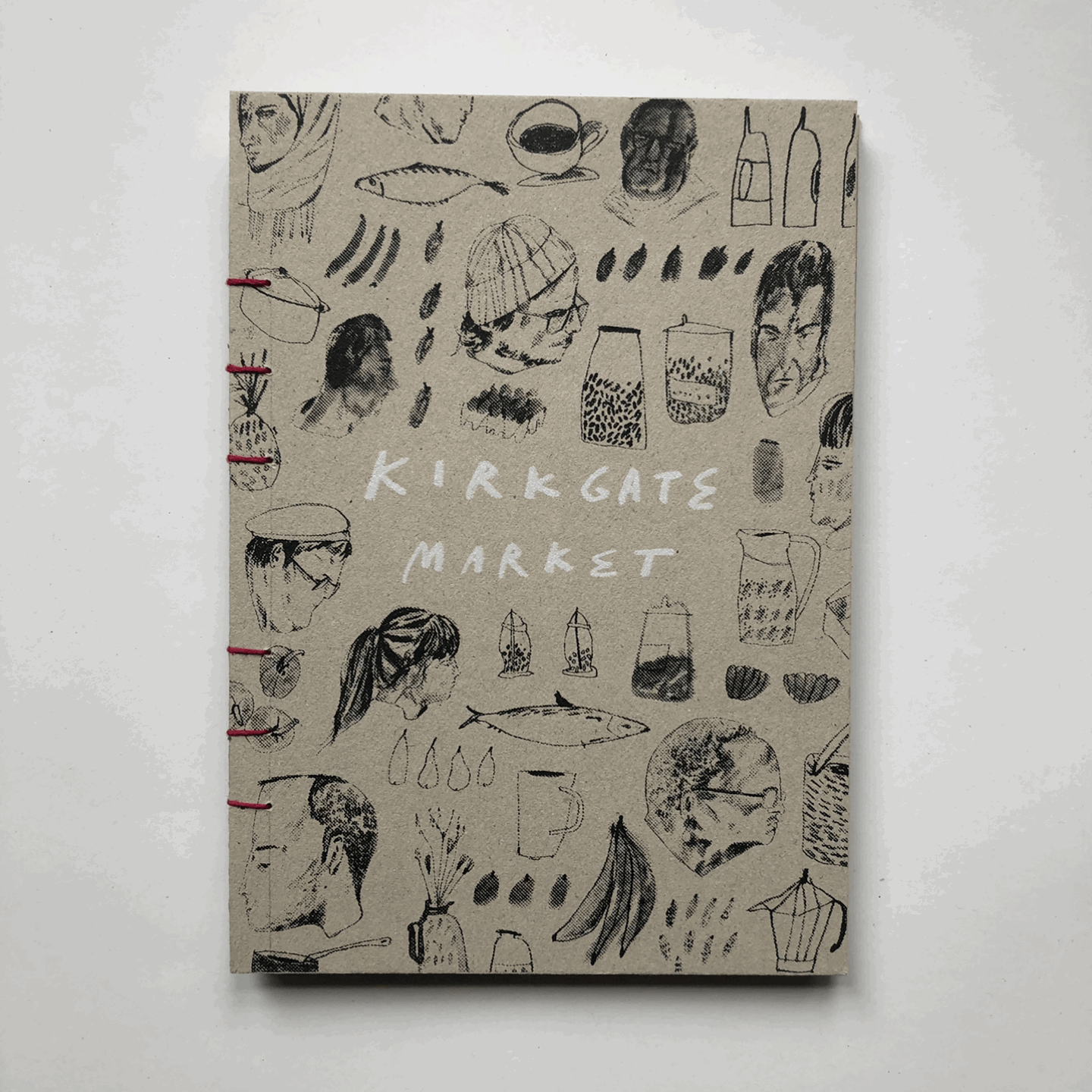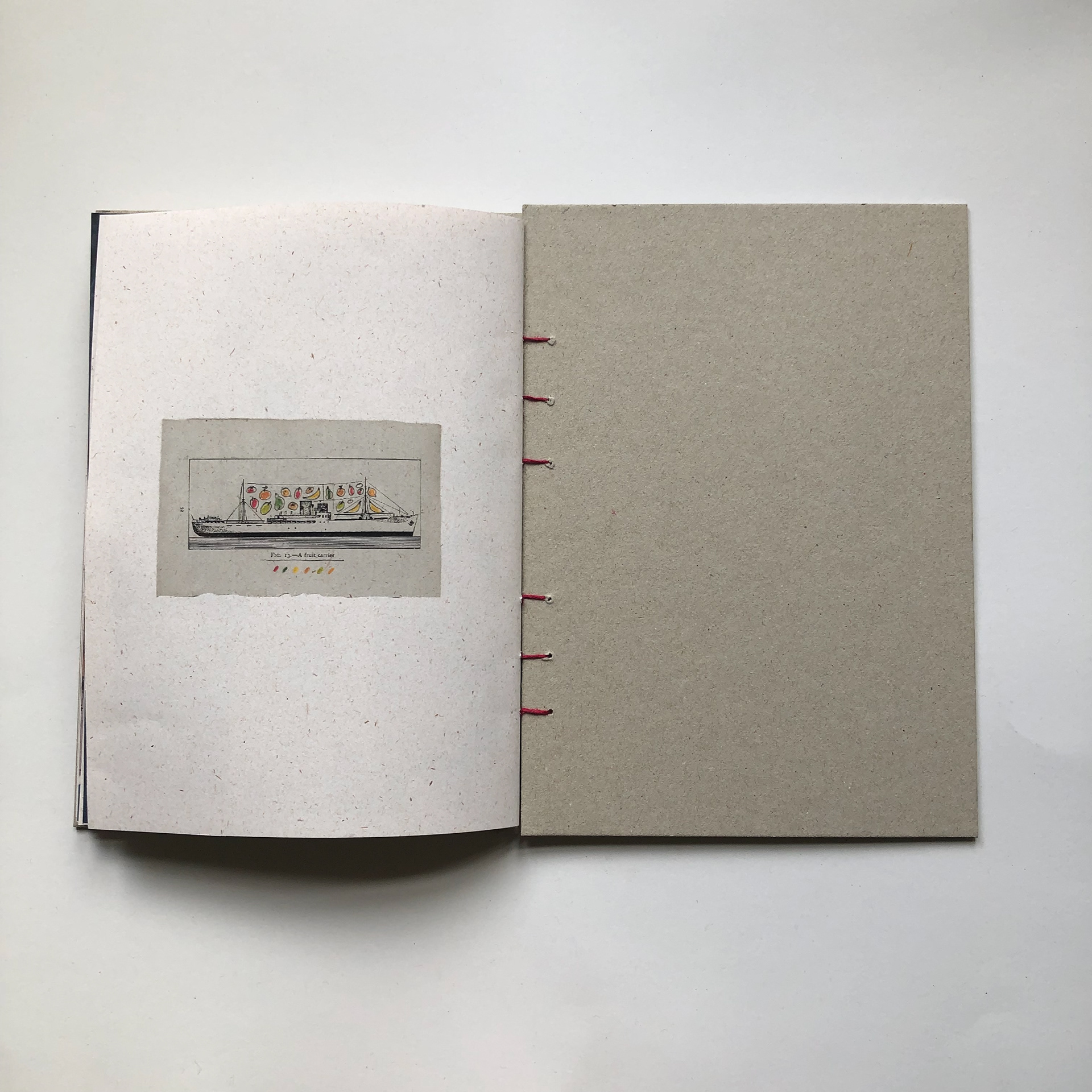 64 page coptic stitch hand bound book with screenprinted cover on greyboard