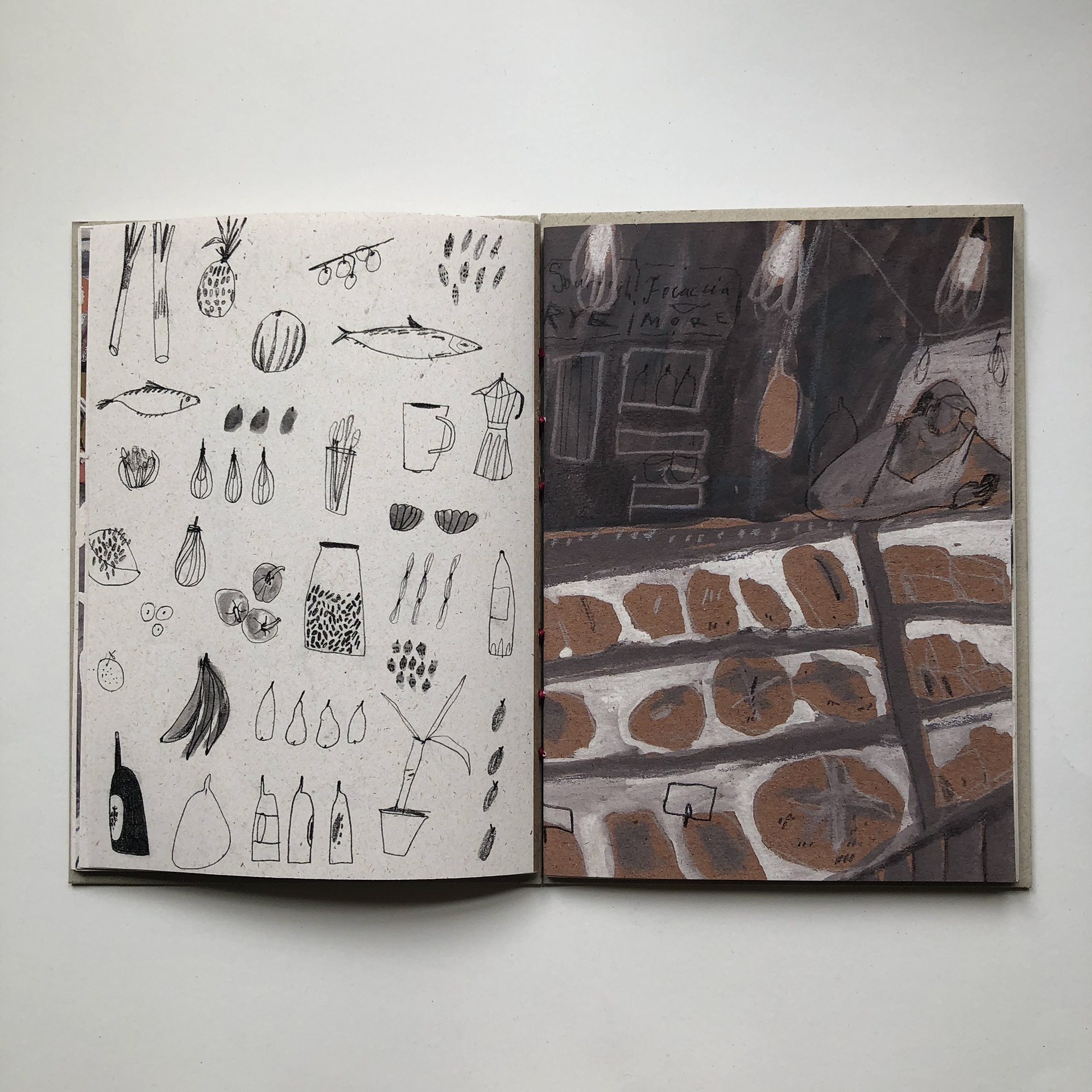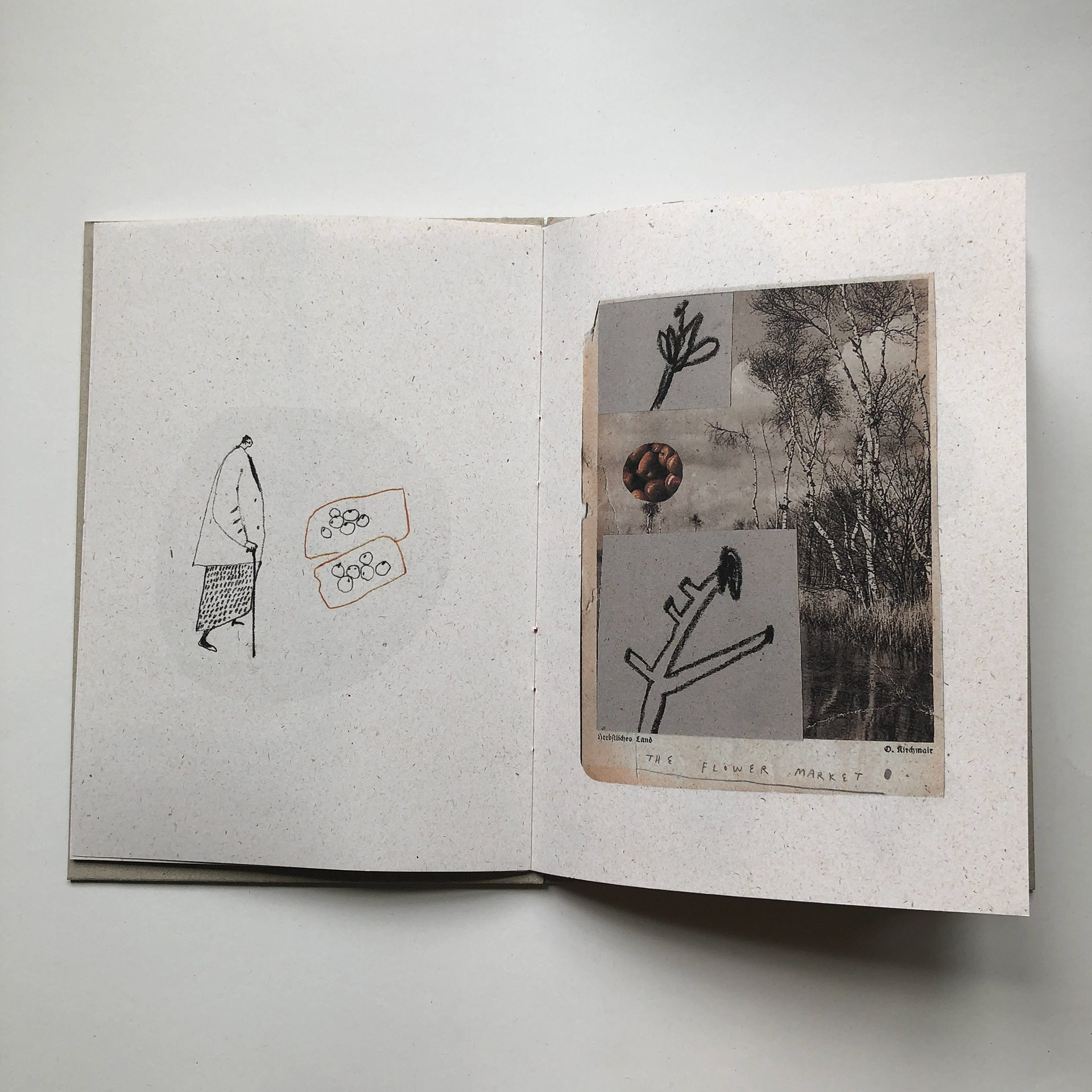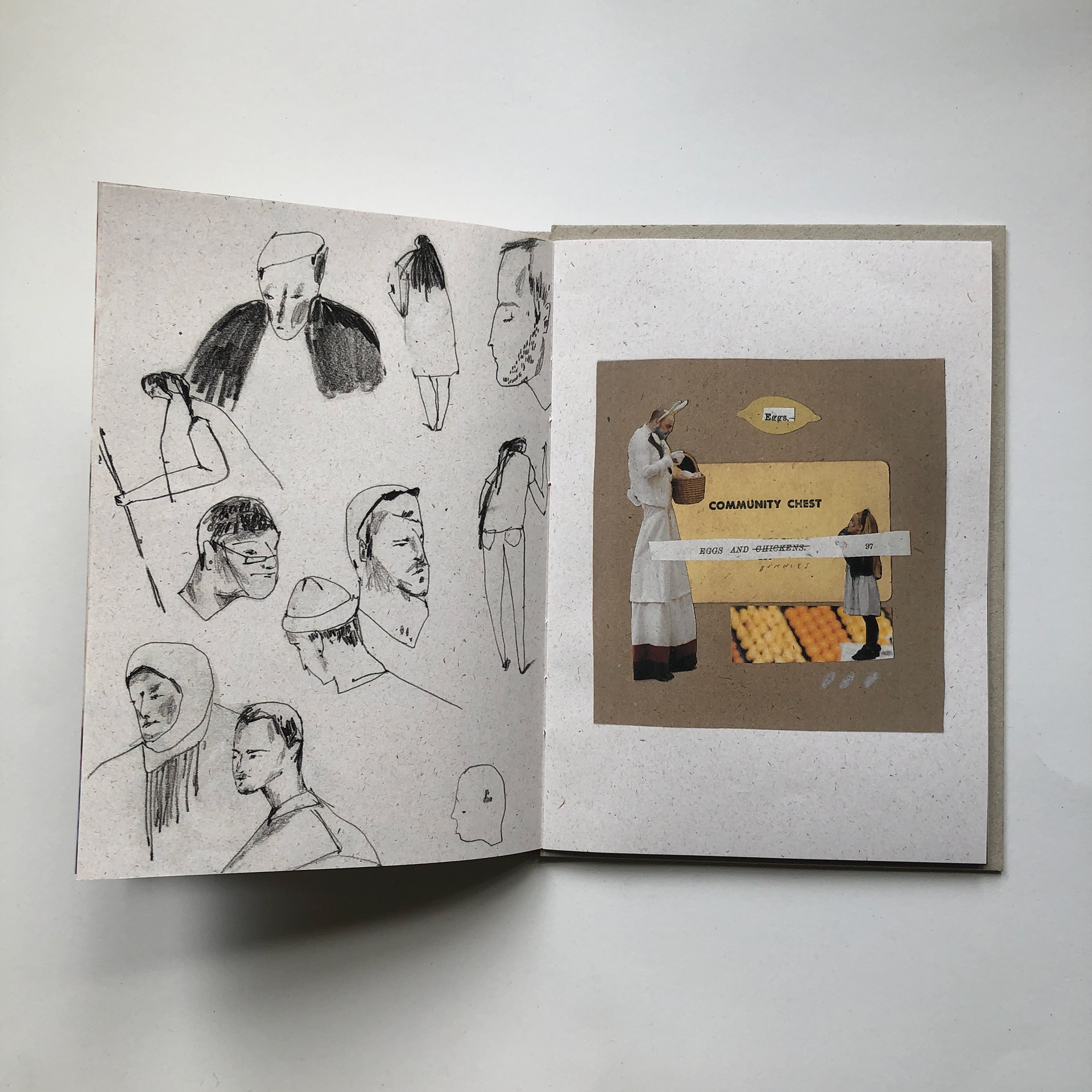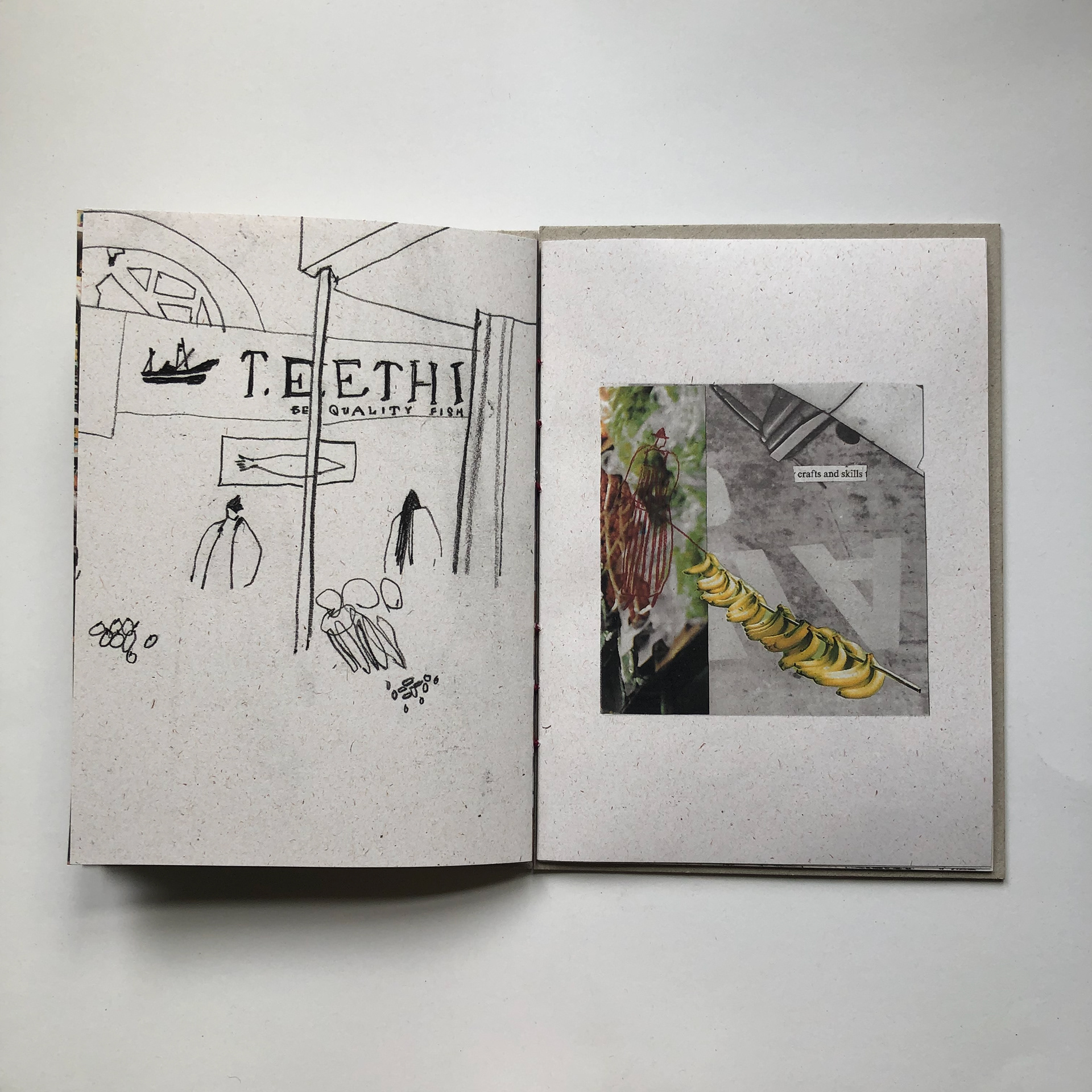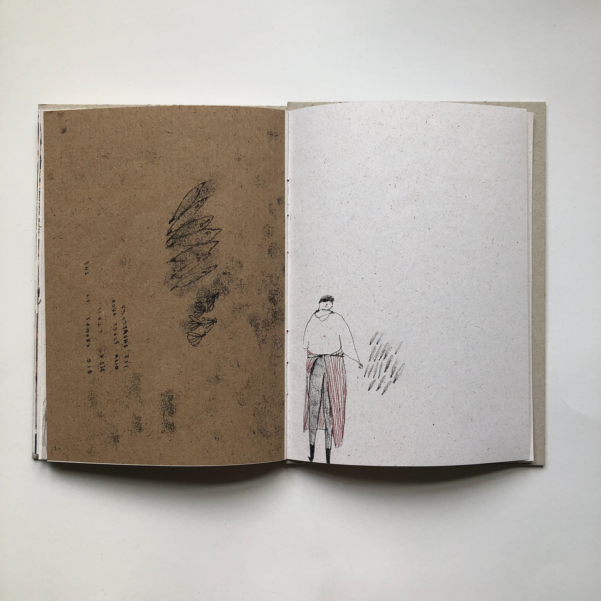 64 page coptic stitch hand bound book with screenprinted cover on greyboard