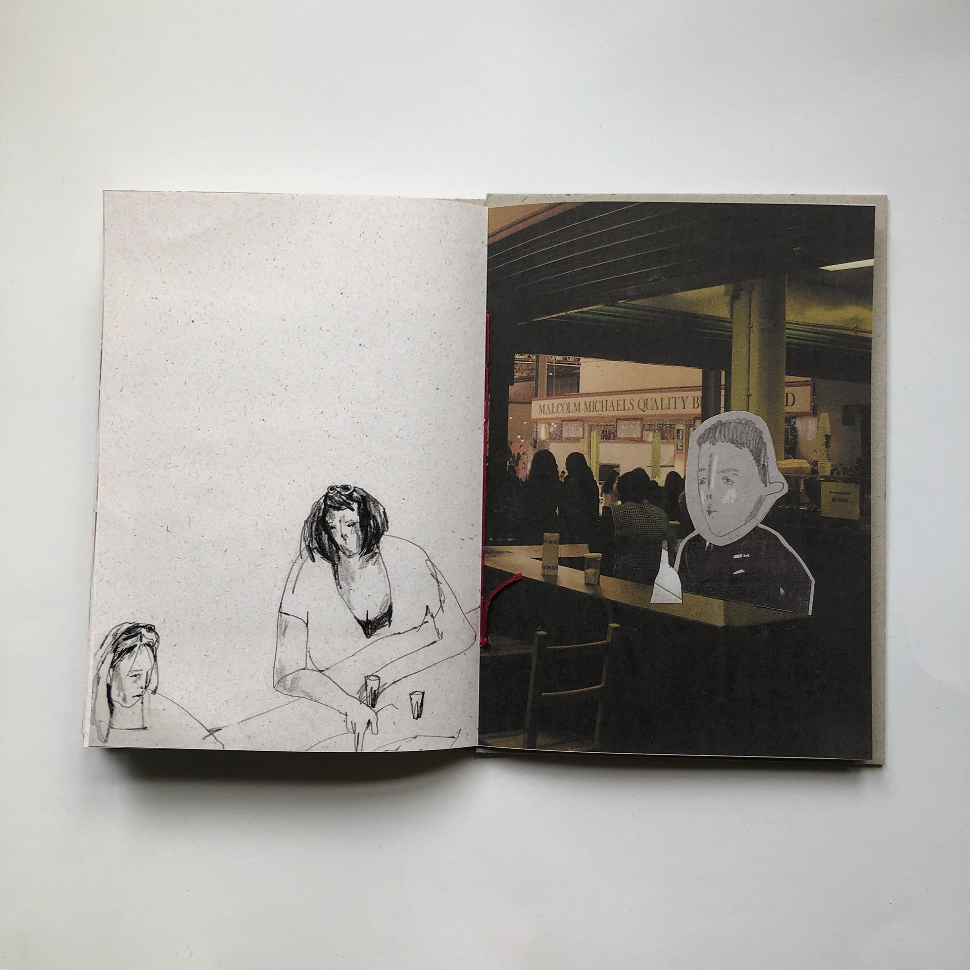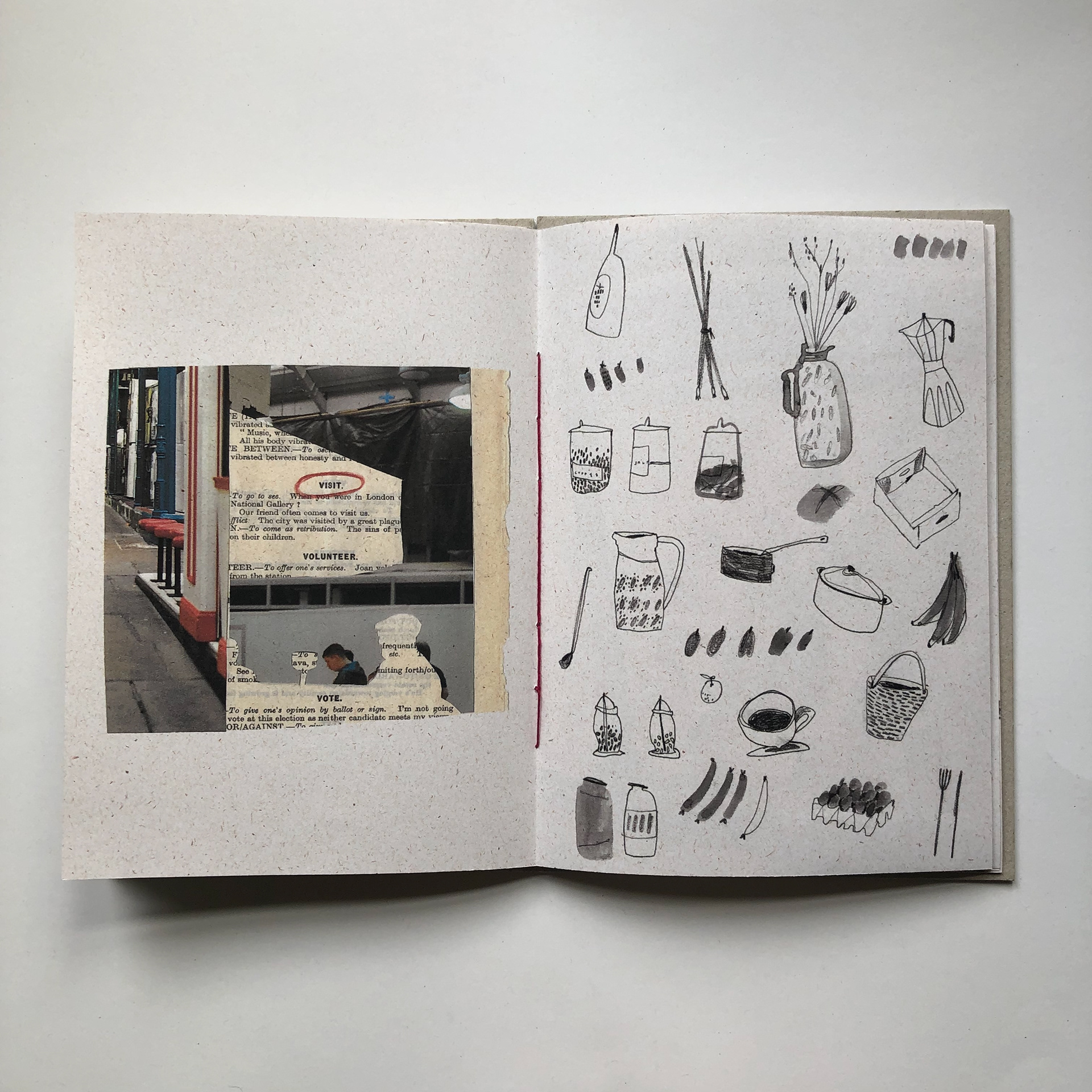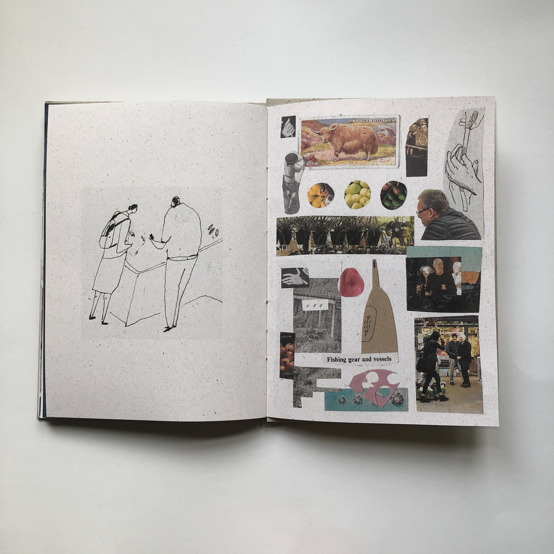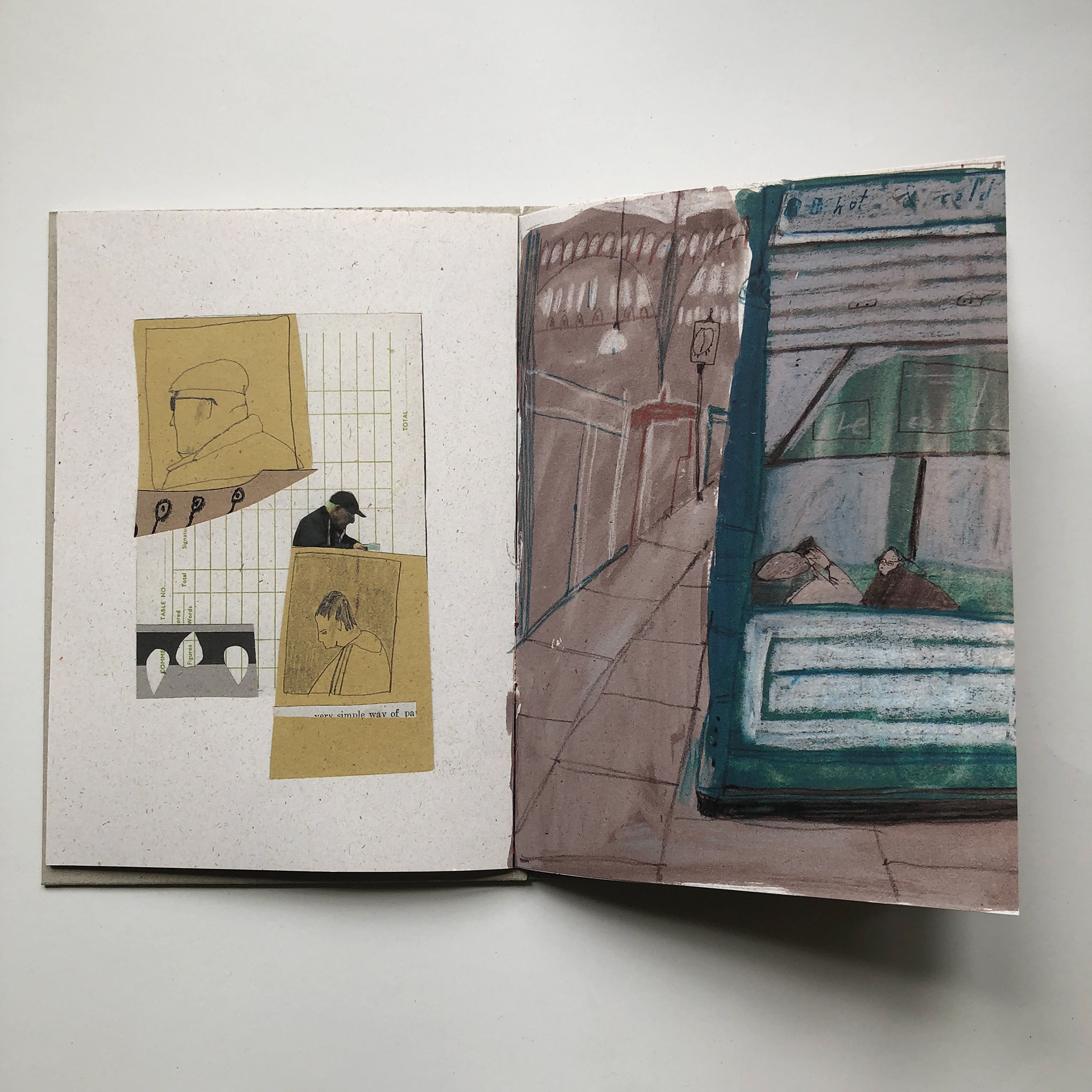 64 page coptic stitch hand bound book with screenprinted cover on greyboard