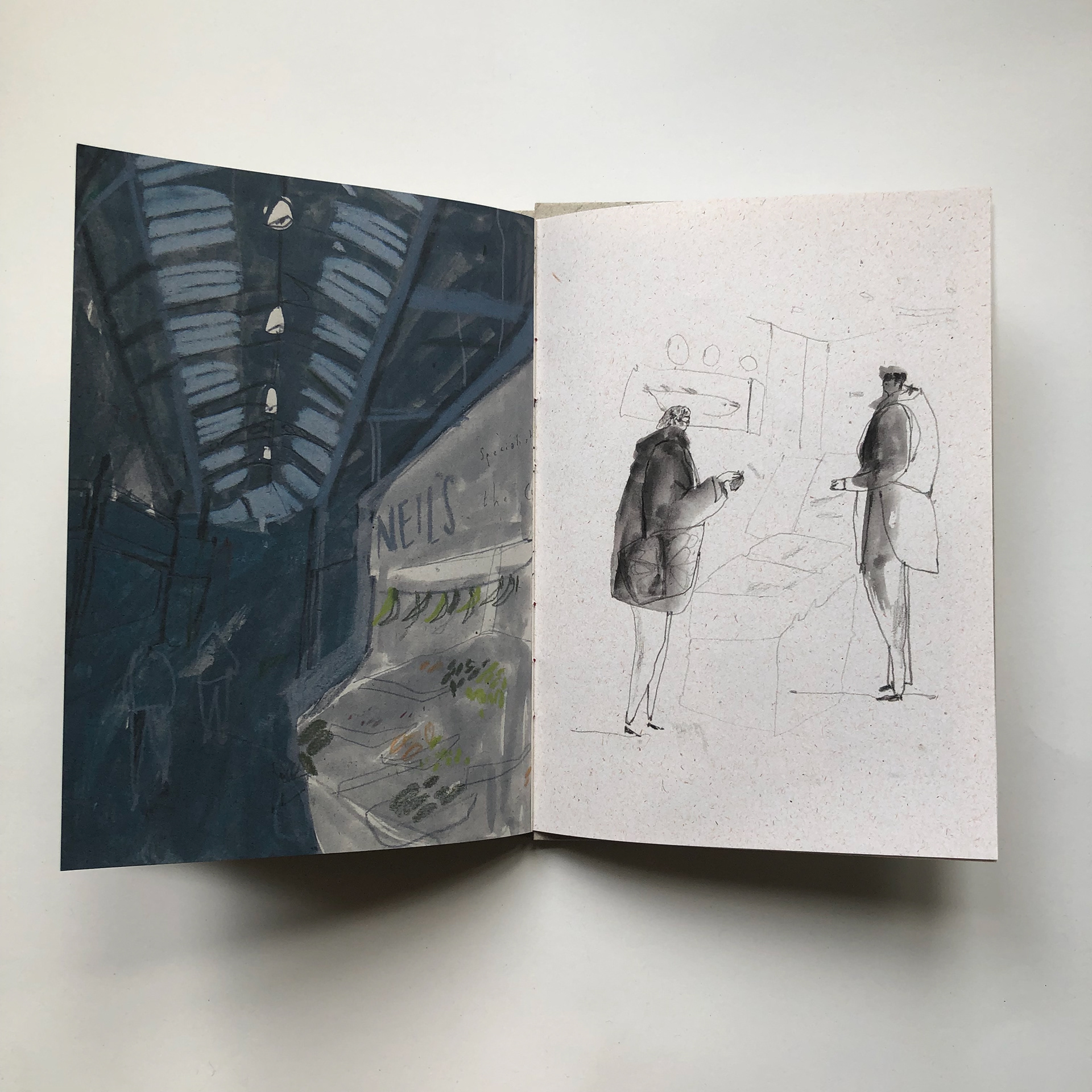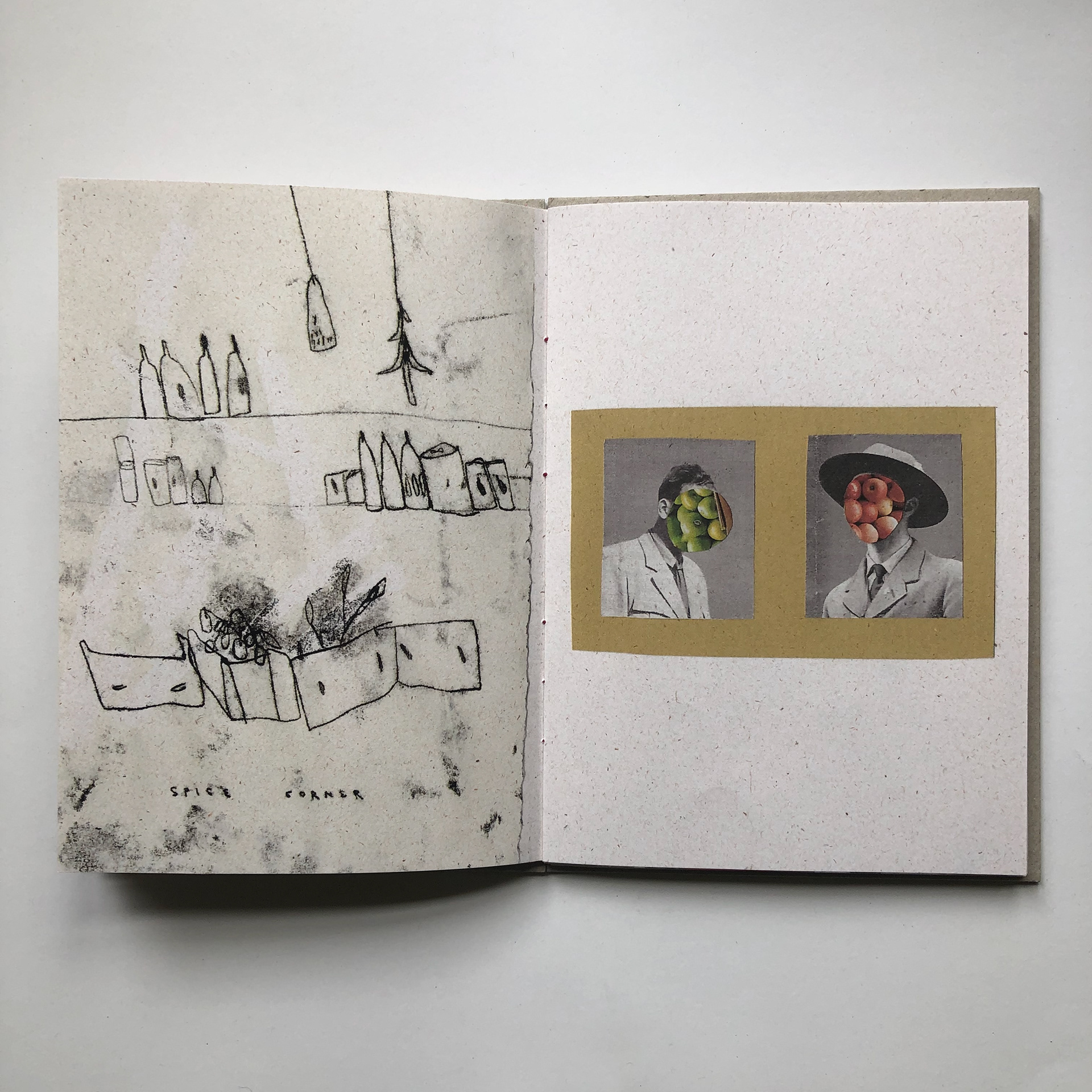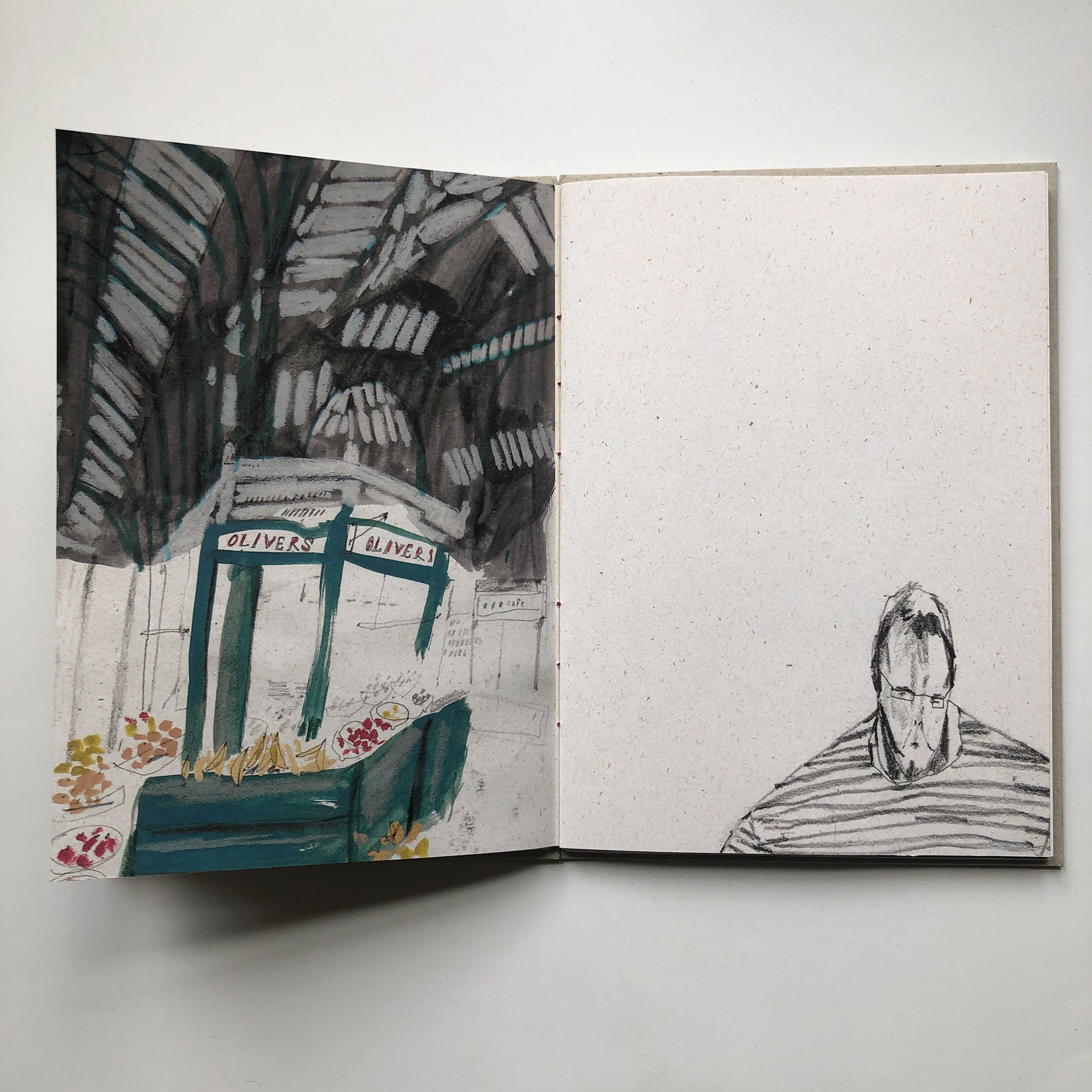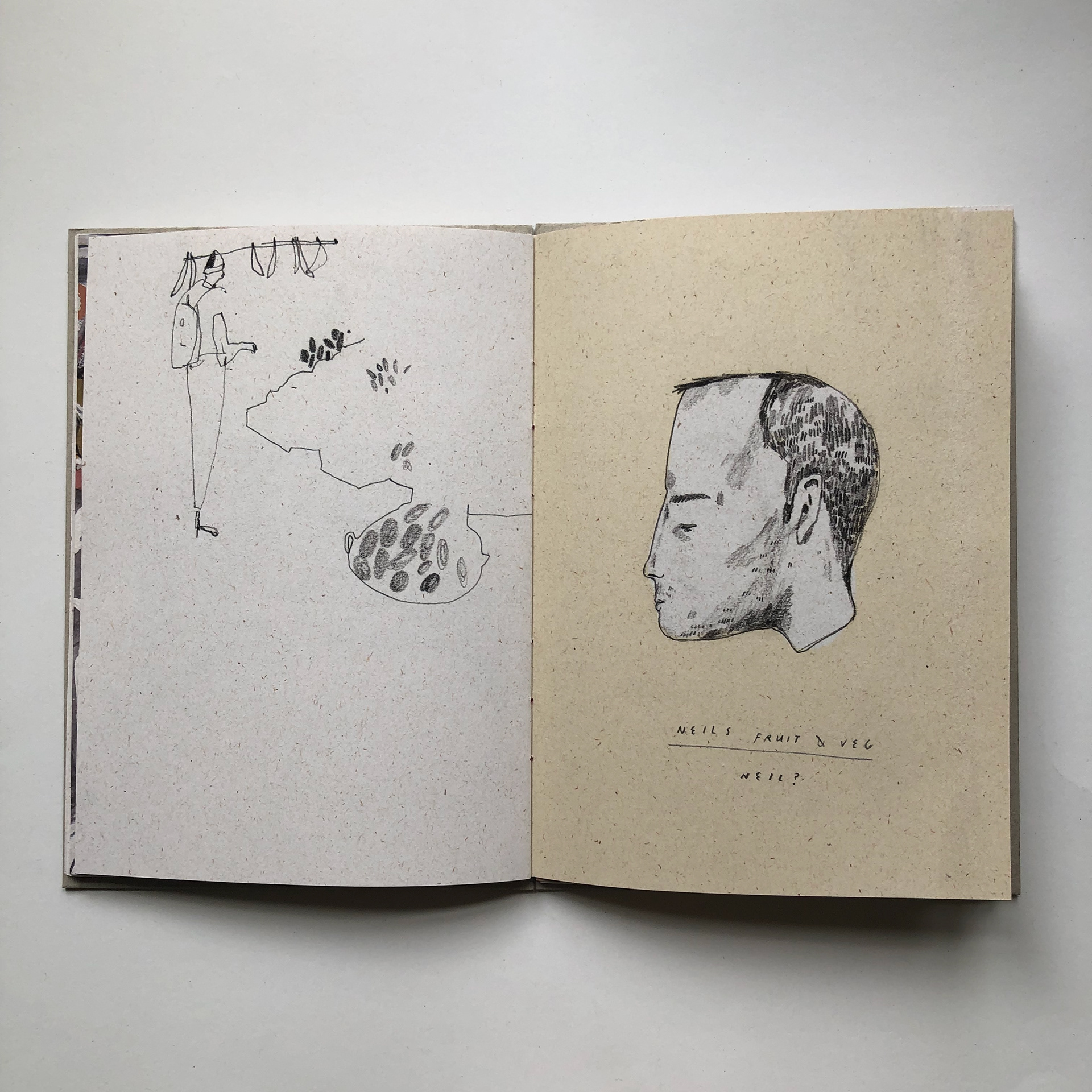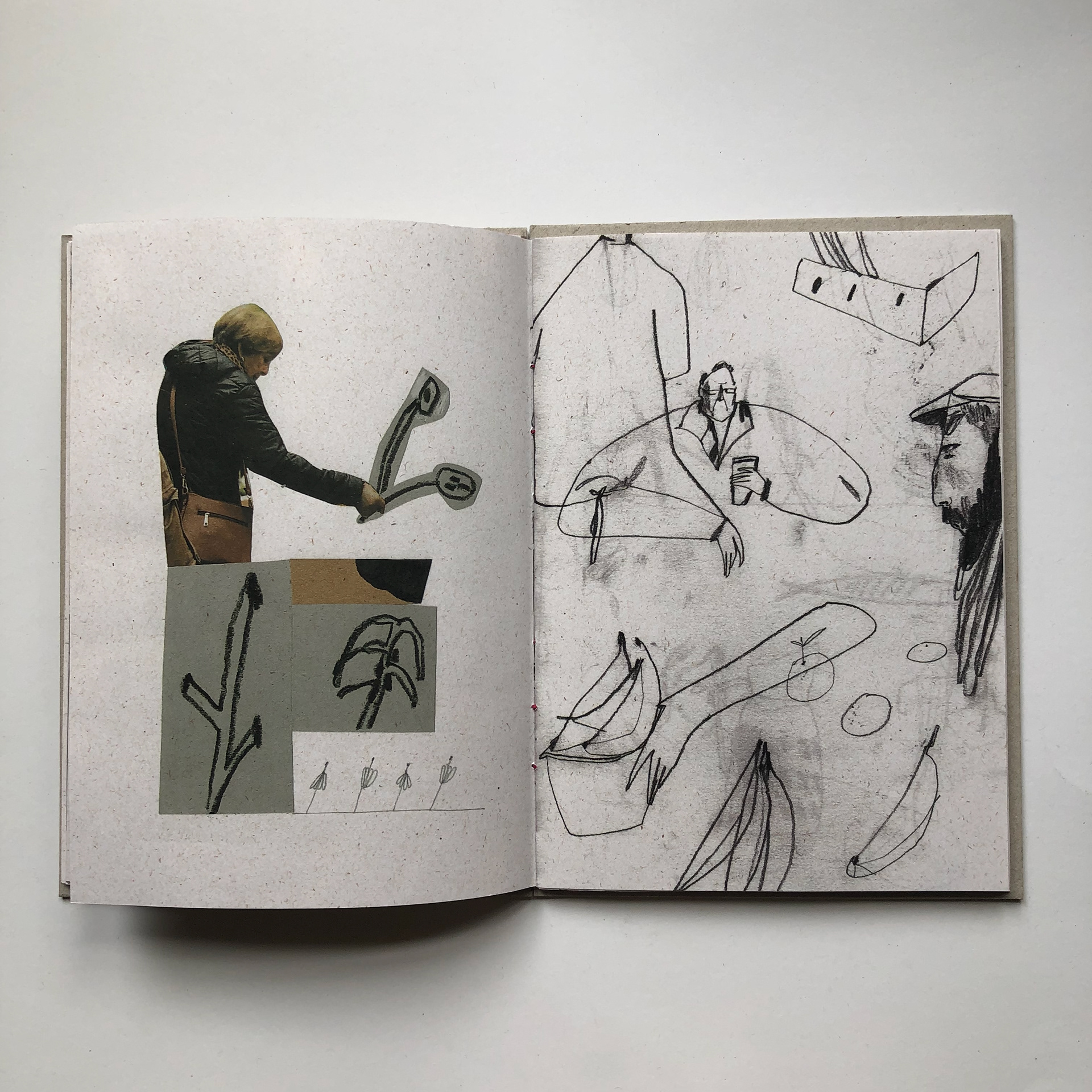64 page coptic stitch hand bound book with screenprinted cover on greyboard