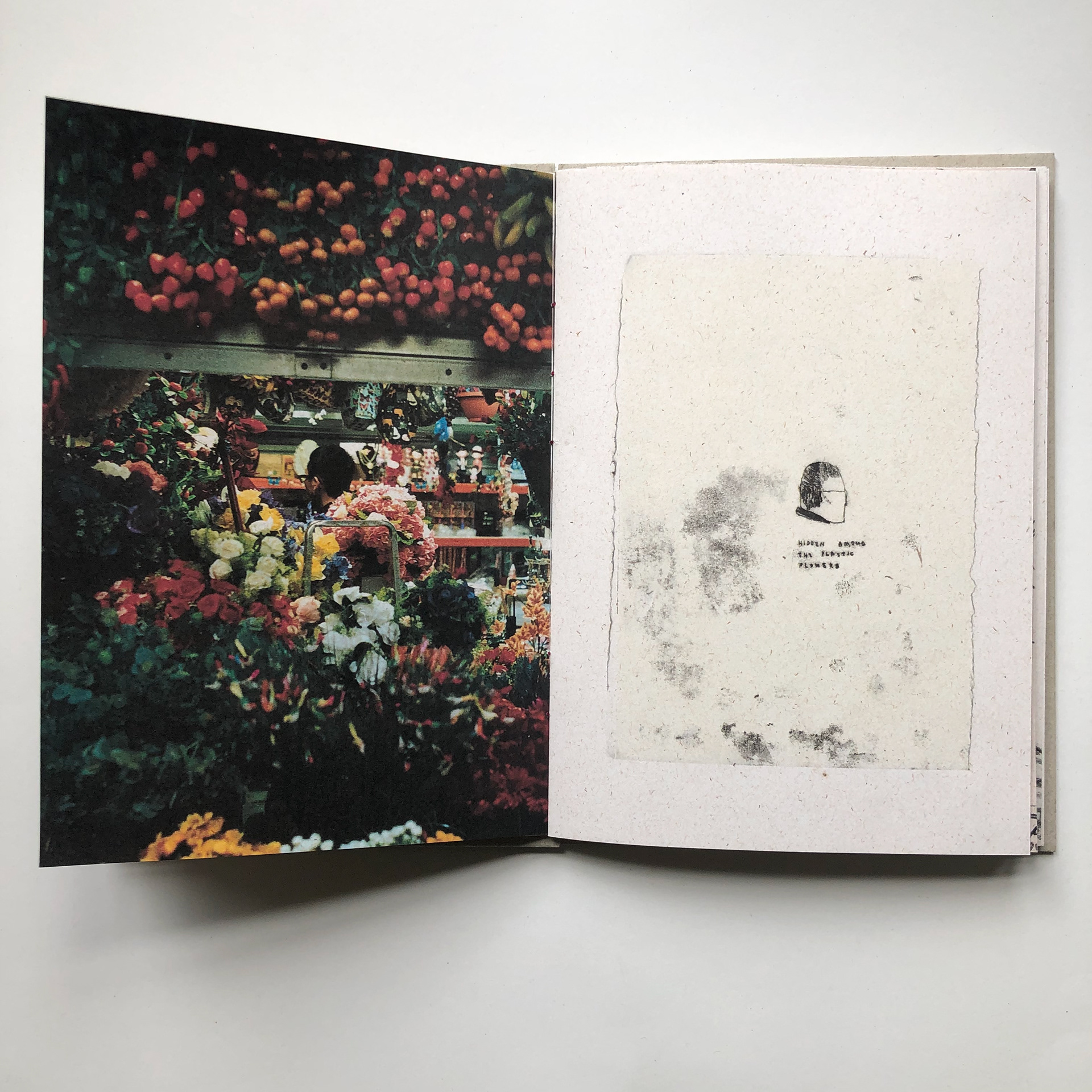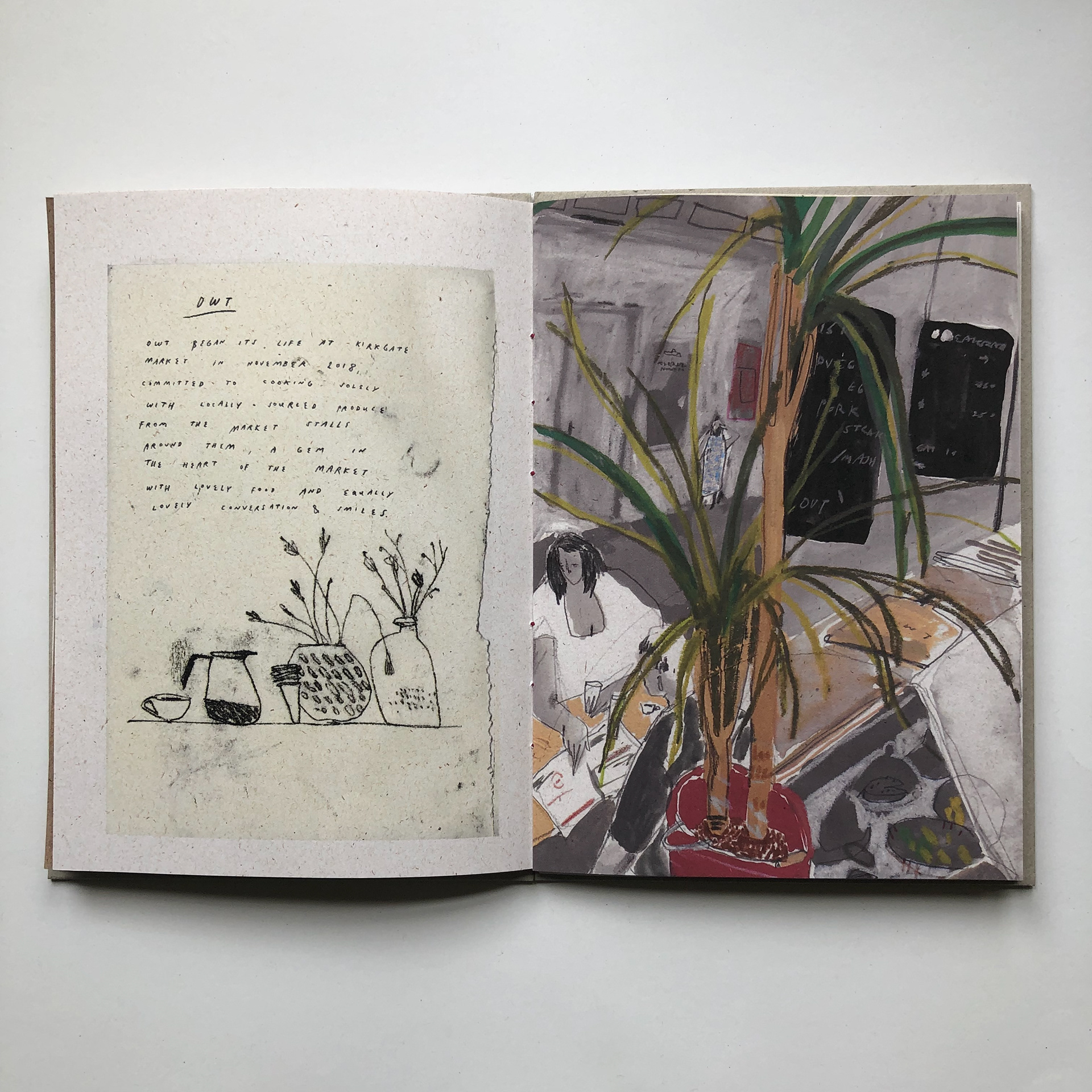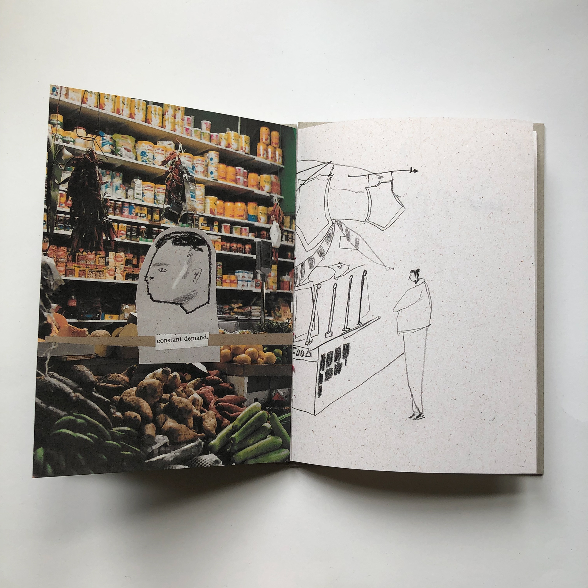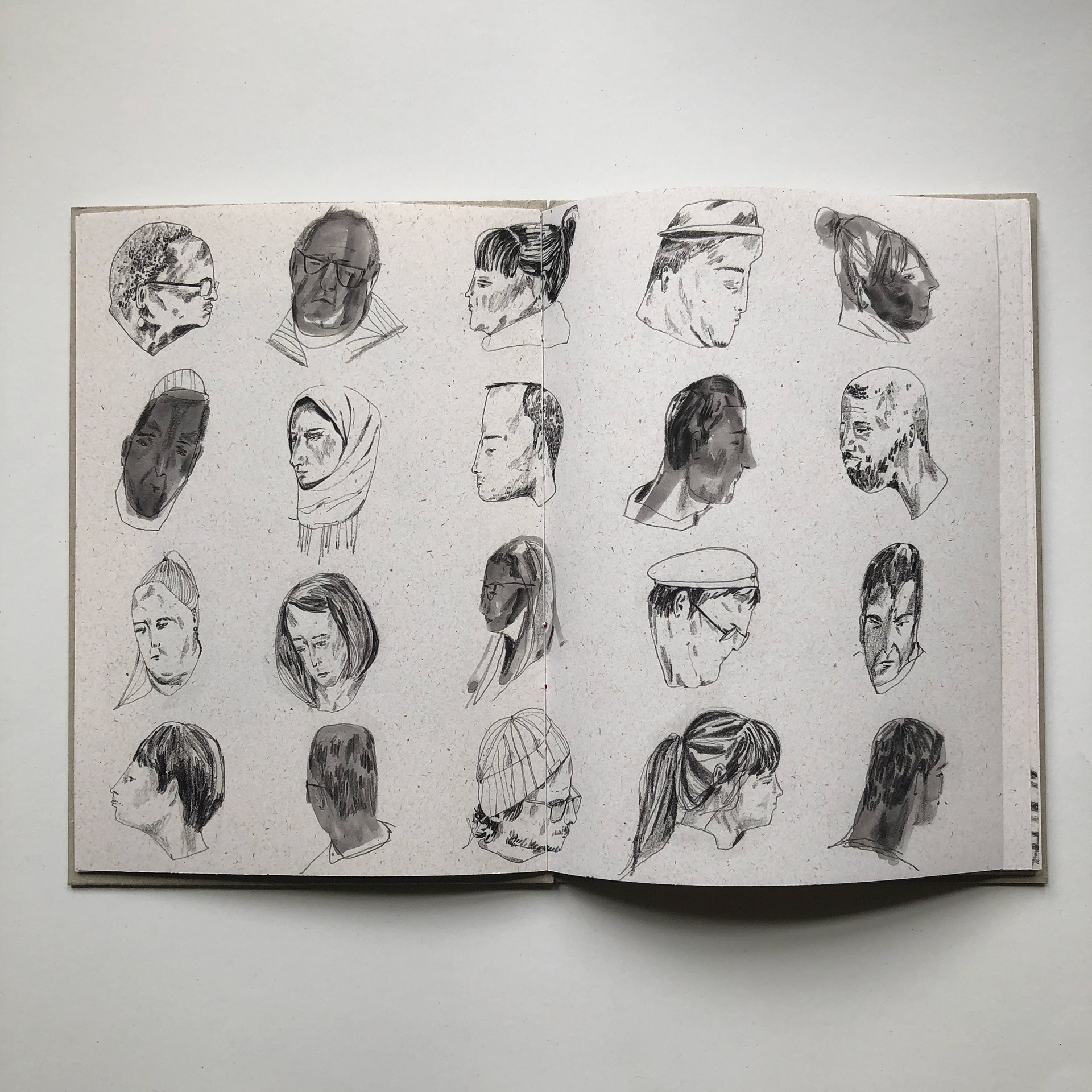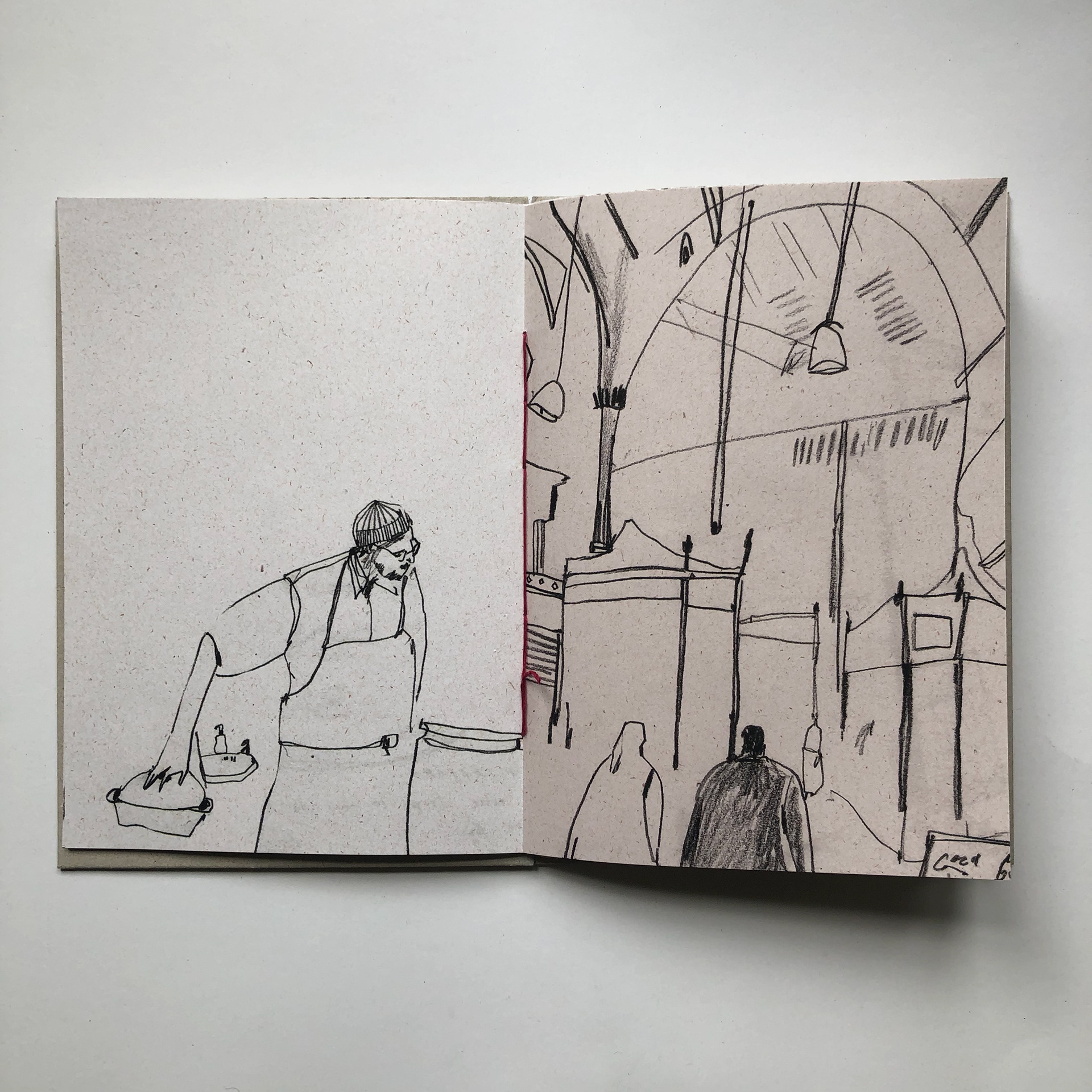 64 page coptic stitch hand bound book with screenprinted cover on greyboard