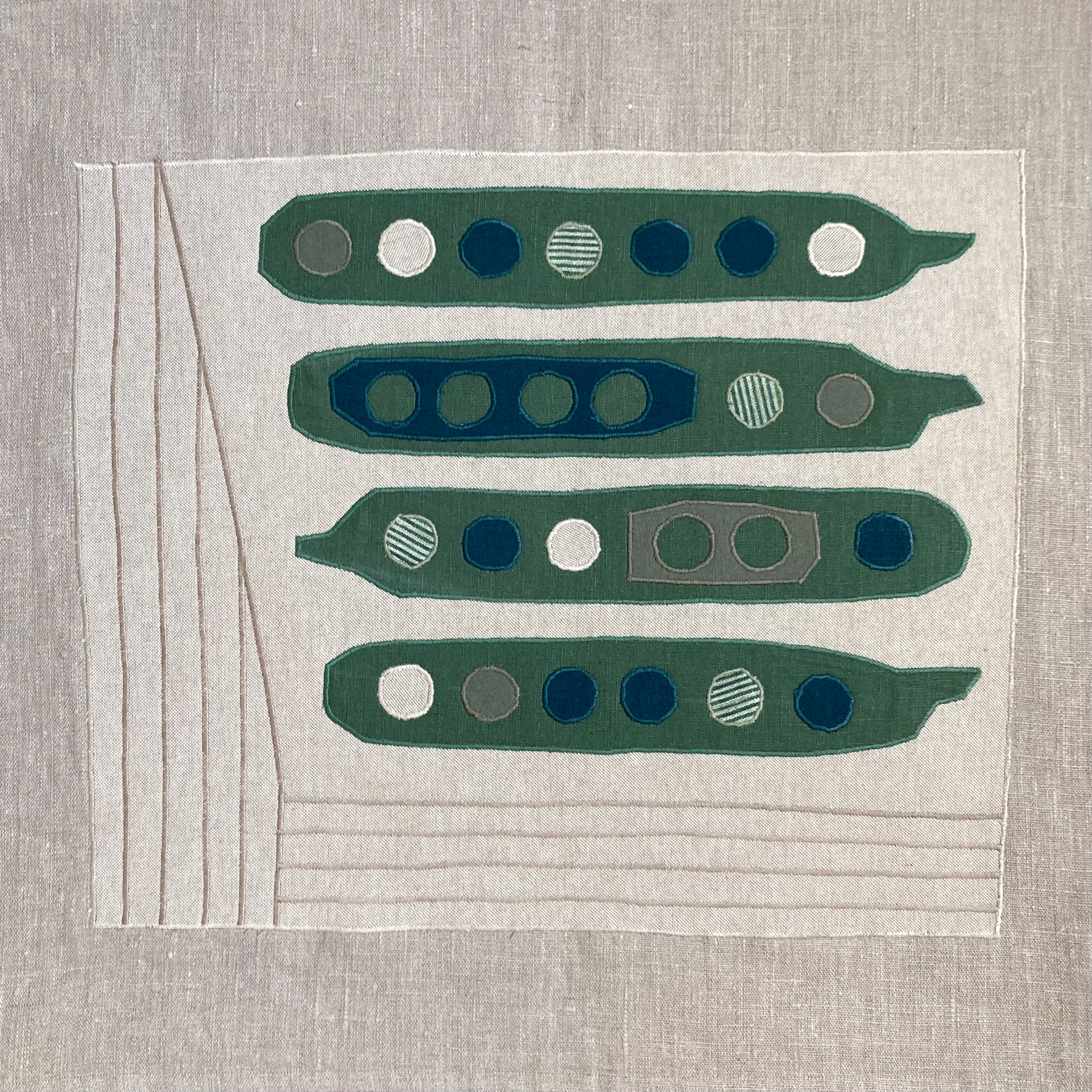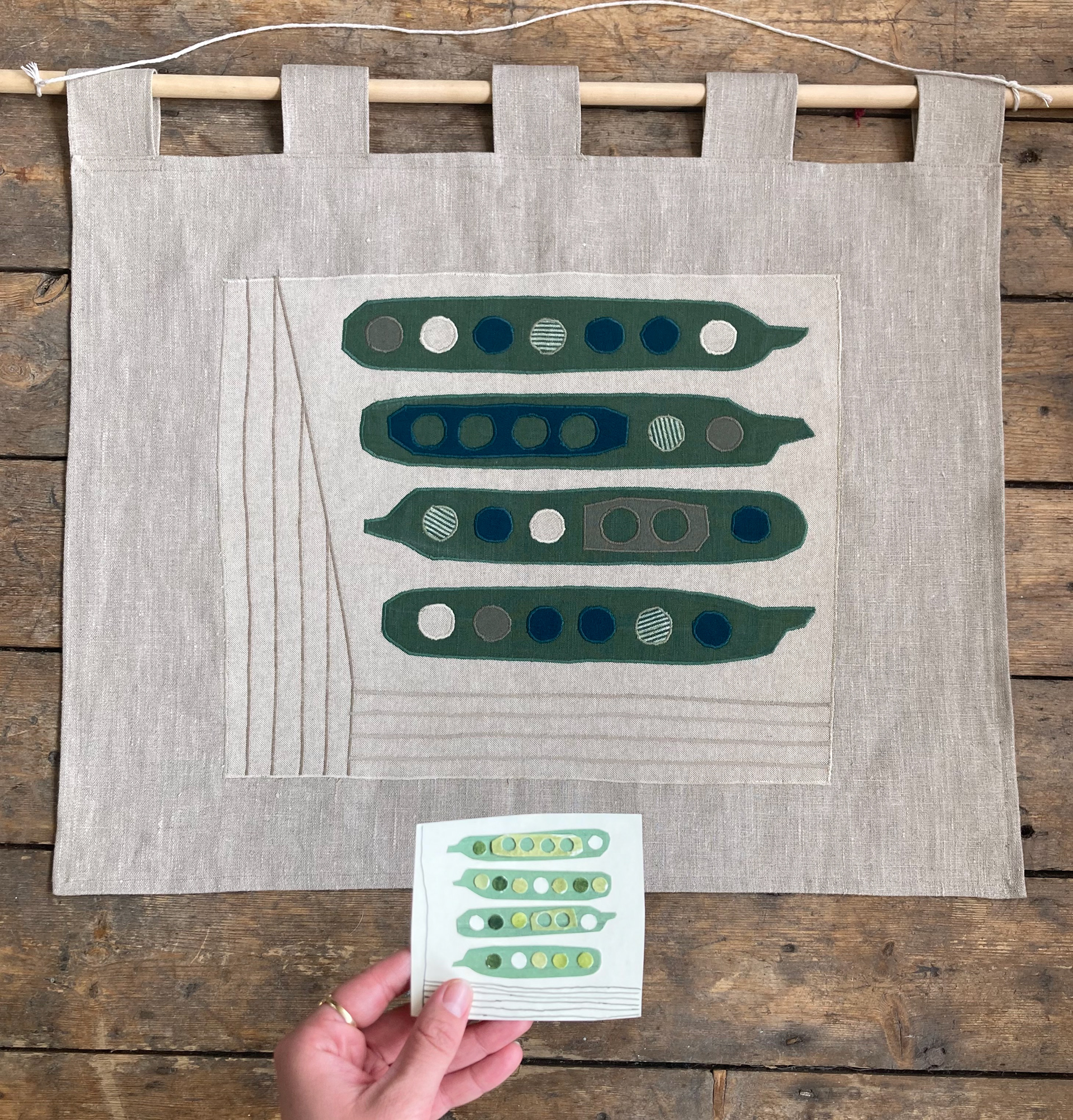 Evolution from a collage I made for my Kirkgate Market Project, into a wall hanging using fabric scraps.